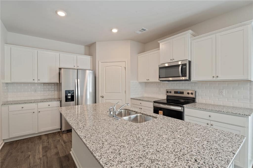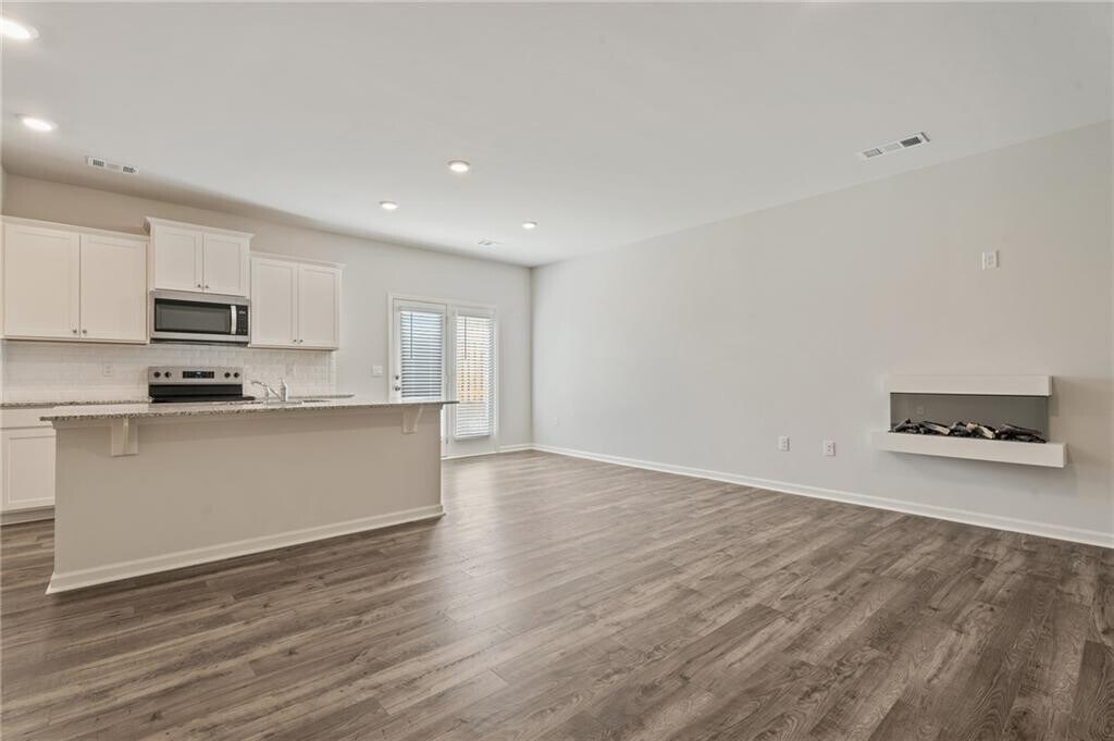 Welcome to 34 Rustin Ridge,a brand-new end-unit townhome in the desirable Mountain Park community of Dahlonega. This spacious three-bedroom,two-and-a-half-bath home offers nearly 1,900 square feet of modern living with a two-car garage. The open-concept main level features a large family room with an electric fireplace that flows into the stylish kitchen complete with granite countertops,subway tile backsplash,white shaker cabinetry,stainless-steel appliances,and a center island. Just off the kitchen is a dining area with access to the private back patio,along with a convenient half bath. Upstairs,the primary suite offers a walk-in closet,dual vanities,soaking tub,and separate shower. Two additional bedrooms,a loft,and the laundry room with washer and dryer included complete the upper level. All appliances are provided,including refrigerator,range,microwave,dishwasher,and washer/dryer. Mountain Park residents enjoy amenities such as a pool,clubhouse with fitness center,and sidewalks throughout the neighborhood. Conveniently located minutes from the University of North Georgia,downtown Dahlonega,shopping,dining,wineries,and GA-400,this home combines comfort,convenience,and community in one beautiful package.