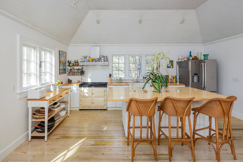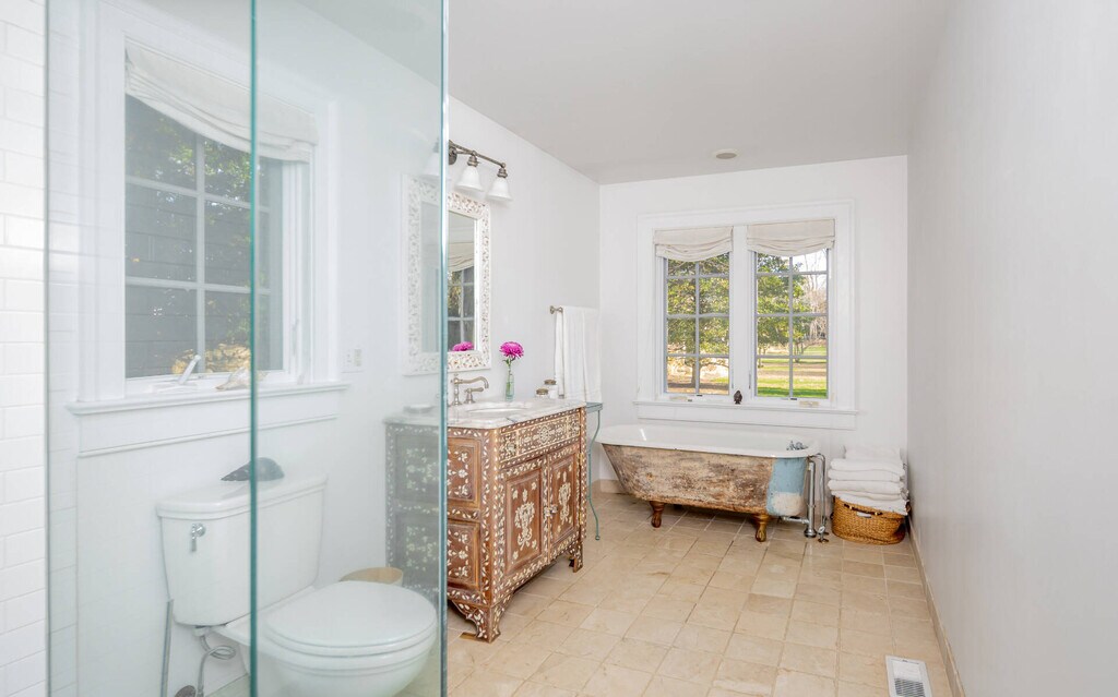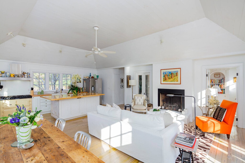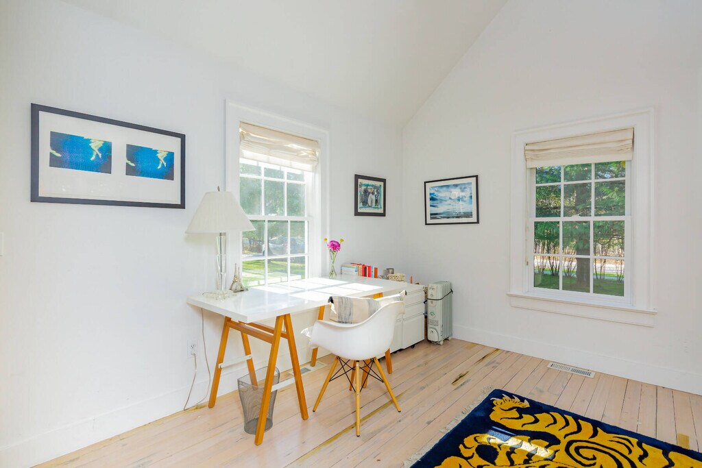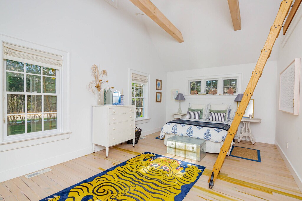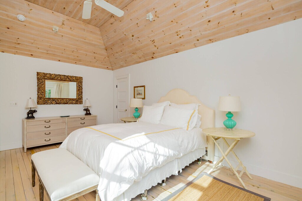 A year round treat awaits. This stylish farmhouse has beautiful natural light and is filled with charm with all rooms on the ground floor. The open kitchen has both seating and dining areas making this room a true pleasure as a place to gather. The bookshelf lined den has a large TV and coziness for reading or working. The 3 bedrooms in the main house are all on the 1st floor. The primary bedroom is dreamy with a vaulted wood ceiling and the bathroom has a porcelain claw foot tub and splashy tiled shower. The guestrooms are spacious and well appointed. The larger Guest Room has a loft area and a desk. Making this property a true compound is the 2 story, 1,150 sq ft. bonus barn off the pool. It is spacious, lofty and private with a second story with light and high ceilings and a ground floor seating area and bonus bunk area. This large and private property is in the heart of Springs very near the Springs General Store and bay beaches. [[Rental Registration # 24-1379]] EH RR #: 24-1379 Rental Terms: July - Labor Day: $72,500 March: $6,500 Other / Short Term - 6/1/2026 - 9/30/2026: $102,500 August - Labor Day: $37,500 May: $6,500 June: $15,000 July: $35,000 April: $6,500 September: $15,000 February: $6,500