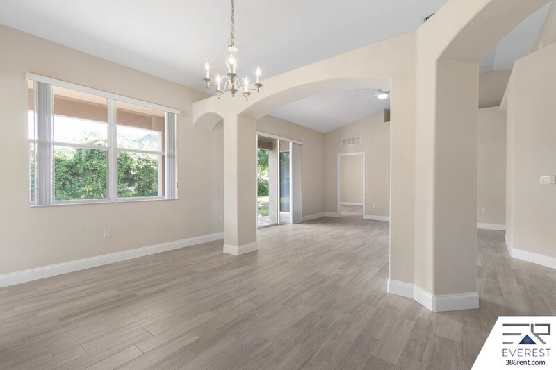 BEAUTIFULLY APPOINTED 3-BED, 2-BATH RESIDENCE WITH FUNCTIONAL KITCHEN IS COMPLEMENTED BY A STYLISH TILE BACKSPLASH, COUNTER BAR, AND COZY BREAKFAST NOOK—PERFECT FOR CASUAL DINING OR ENTERTAINING. OFFERING A WELCOMING FOYER, FORMAL DINING ROOM, AND A LIVING ROOM WITH VAULTED CEILING THAT OPENS THROUGH SLIDING GLASS DOORS TO AN OVERSIZED COVERED PORCH AND SERENE, PARK-LIKE BACKYARD—IDEAL FOR ENTERTAINING OR QUIET RELAXATION. NEW TILE FLOORING THROUGHOUT AND THOUGHTFULLY DESIGNED LIVING SPACES WITH MODERN LIGHTING. THE SPACIOUS MASTER SUITE IS A PRIVATE RETREAT, BOASTING A TRAY CEILING, DOUBLE-SINK VANITY, ROMAN TUB, WALK-IN SHOWER, AND GENEROUS WALK-IN CLOSET. ADDITIONAL FEATURES INCLUDE 2319 TOTAL SQ FT, 1655 LIVABLE SQ FT, AND A TWO-CAR GARAGE. SITUATED ON A QUIET CUL-DE-SAC IN THE PRESTIGIOUS SEMINOLE WOODS NEIGHBORHOOD, WITH CONVENIENT ACCESS TO TOP-RATED SCHOOLS, SHOPPING, THE TOWN CENTER, BEACHES, MAJOR HIGHWAYS, DAYTONA BEACH, AND HISTORIC ST. AUGUSTINE. PROFESSIONAL LANDLORD. AVAILABLE FOR IMMEDIATE MOVE-IN. $1950 ON 3-YEAR LEASE $2050 ON 2-YEAR LEASE $2150 ON 1-YEAR LEASE
