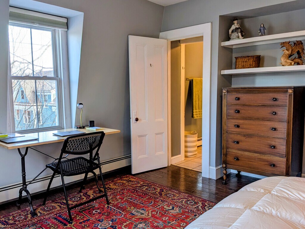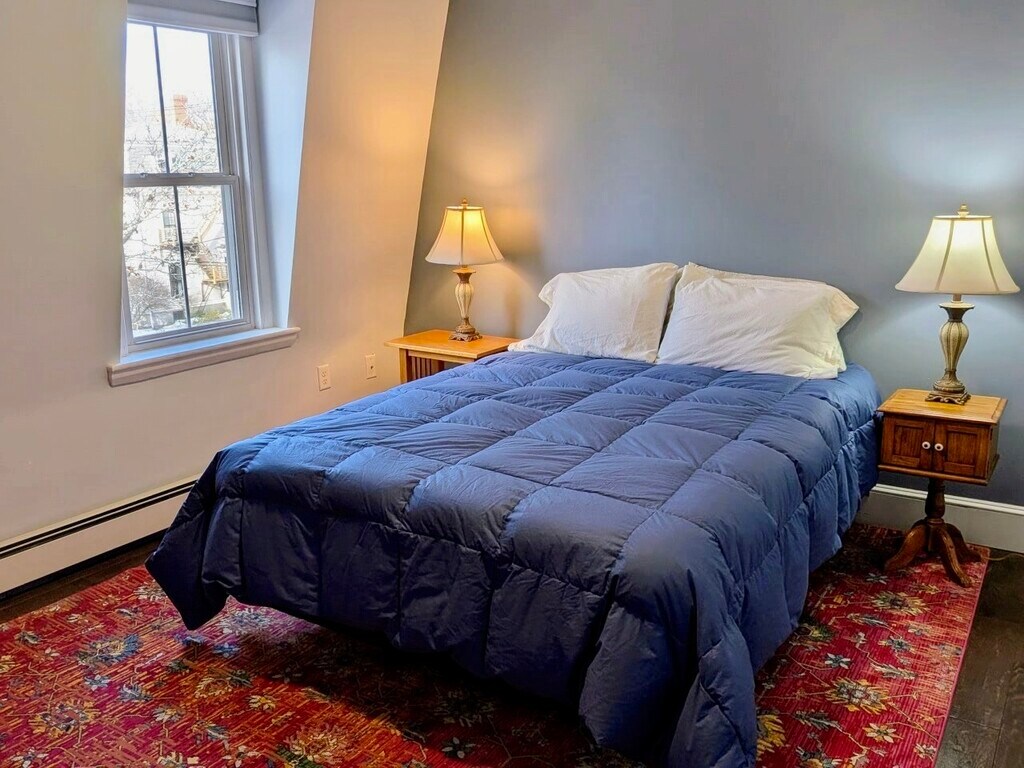 Charming, fully furnished 2-bedroom, 2-bathroom condominium in the heart of Portland’s historic West End. Quiet neighborhood within walking distance to local businesses and restaurants, the scenic Western Promenade, Maine Medical Center, and the Portland Museum of Art. Congress Street and the Old Port district, with eateries, shopping, and many theater and entertainment venues, are just a walk or short drive away. This 1200 sq ft unit encompasses the entire third floor (walk-up, no elevator) of a well-maintained, three-unit, mansard-style Victorian building, and enjoys natural light in each room and views of treetops and other vintage neighborhood homes. All amenities and utilities are included in the rent, notably, reserved off-street parking for 1 car- updated, fully equipped kitchen and bathrooms- in-unit washer/dryer- ample storage- and high-speed fiber-optic internet. Each spacious bedroom has a small desk/work space, and the small dining room can also double as a private work area. No smoking or pets allowed. This unit is available for a three-to-four-month period beginning June 2026 (exact dates negotiable) for $3,200/month, plus a $3,200 security deposit. Applicants are required to complete a rental application and authorize/pay for a $55 credit and background check. Please submit the form on this page or contact Phil (owner) at to learn more.