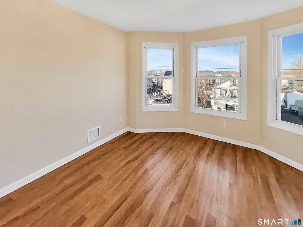 Call for Availability - Clean and bright top-floor apartment with views of East Rock. This well-maintained unit offers three bedrooms, a spacious living room, and a full bathroom. The kitchen features modern appliances and ample cabinet space. Laminate flooring runs throughout the apartment, creating a clean and cohesive look. Located on the top floor, the apartment benefits from excellent natural light and added privacy. Laundry hookup ready for your washer and dryer. The apartment is equipped with gas heat and gas hot water. Off-street parking is available. The location provides access to local stores, shopping areas, major highways, and is just a few blocks from Quinnipiac River Park. The unit offers approximately 1,115 square feet of living space. MLS# 24150735