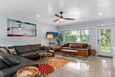 Cozy beach escape in dive-perfect location with all the extras - from surfboards & bikes to games & beach towels. Fully remodeled mid-century modern 2 bed, 1 bath with beautiful terrazzo floors, impact windows & doors, and a complete set of blackout shades ideal for a true R&R getaway. Walk 3 blocks to Singer Island's restaurants & shops or walk 5 short blocks to Sailfish Marina to catch a ferry to Peanut Island. The property has only 2 units, each with its own outdoor grill and semi-private patio separated by a metal privacy fence. Washer & dryer available in outdoor closet accessible to all tenants. Furnishings include 2 queen beds, 1 L shape leather couch that sleeps 2 adults, a day bed and pullout twin trundle. Portable crib available upon request. Parking for 4 vehicles. Dogs welcome. MLS # A11881796
