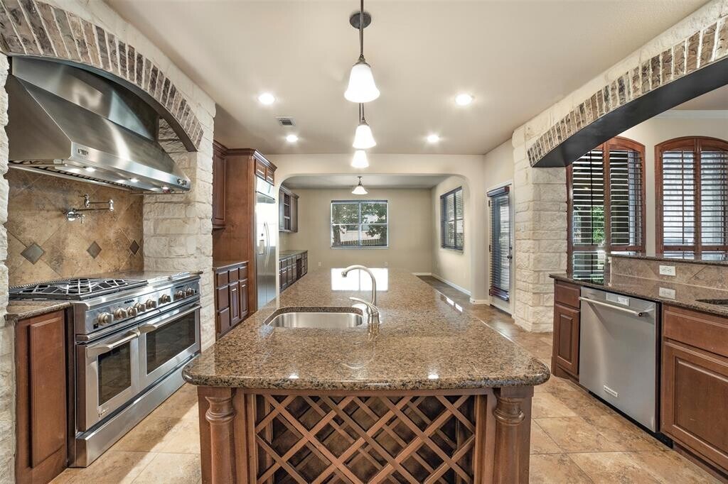 Welcome home to 340 Grafton Ln! This rare single story home is a generous 3300sq ft, offering plenty of space for its 4 bedrooms, 3.5 bathrooms, formal dining room, a separate office space, and a flex/media room. It was intentionally built to accommodate both daily living and grand entertaining. The centerpiece of the home is its gourmet kitchen, equipped with top-of-the-line appliances and finishes that make hosting and daily cooking convenient and fun. It has 2 ovens, one that's a smart oven and dual gas/electric, a built in wine fridge and wine rack, 2 sinks each with their own disposals, and a new microwave and dishwasher. The stove top includes gas burners on the left, and a griddle AND grill on the right. Lastly, the overhead vent hood has heaters/warmers that are perfect for keeping your meals ready to eat for any occasion! The office space is located at the front of the home, away from the main rooms making it ideal for remote work or study without disturbance. Additionally, the flex/media room offers adaptability to suit your personal needs, whether it be a home theater, play area, or creative studio. Want to get outside after a long day to unwind and relax? Your upgraded outdoor living area is the perfect spot. Enjoy the outdoor fireplace in the fall, and the built in griddle year round! It also includes a built in sink and outdoor fridge. You won't need to worry about hard water either as there is a water softener / purifier as well. The washer and dryer / built in refrigerator that will stay through the lease. Give me a call to tour today!