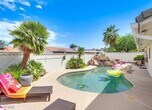 Dale JonesPOOL HOME FOR FUN! Beautifully updated single-story featuring a remodeled kitchen with granite countertops, stainless steel appliances, a wine cooler, and upgraded cabinets. Enjoy faux-wood shutters, a brick fireplace, and oversized ceiling fans in the dining and living areas. Home features 20x20 ceramic tile throughout, three sliding doors leading to the backyard, and a second bedroom with a built-in desk, shelving, and Murphy bed. The exterior includes a paver walkway, updated windows, metal carport with 11-ft RV gate, and a sparkling 15K-gallon pool with tile mermaid, turtles, and rock waterfall. Freshly painted and professionally cleaned move-in ready! Base rent is $2,299 plus $65 monthly Resident Benefit Package, totaling $2,364. Tenant must hire licensed and insured pool and landscaping services, transfer sewer and trash into their name, and provide monthly receipts confirming accounts are current. Verify all fees with your agent before applying.
