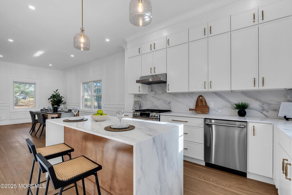 Great opportunity to rent a fully renovated home w/brand-new addition in desirable Fair Haven! This 4 bedroom,3 full bathroom colonial offers 2,130 sf of luxury living with custom millwork,10 ft ceilings,oak floors,solid doors,& recessed lighting. The stunning chef's kitchen features white slim shaker cabinetry,waterfall island,quartz counters,& GE Cafe appliances. Enjoy a 1st-floor guest ensuite/home office & open floor plan! Exterior upgrades include Hardie Board siding,Timberline roof w/metal accents,Andersen 400 windows,covered front porch,paver walkway/patio,& new driveway. Primary suite w/walk-in closet,rain shower,frameless glass,& double vanity! Detached garage,tankless water heater,& 2-zone HVAC. Minutes to NYC train/ferry,downtown Red Bank,beaches & dining!