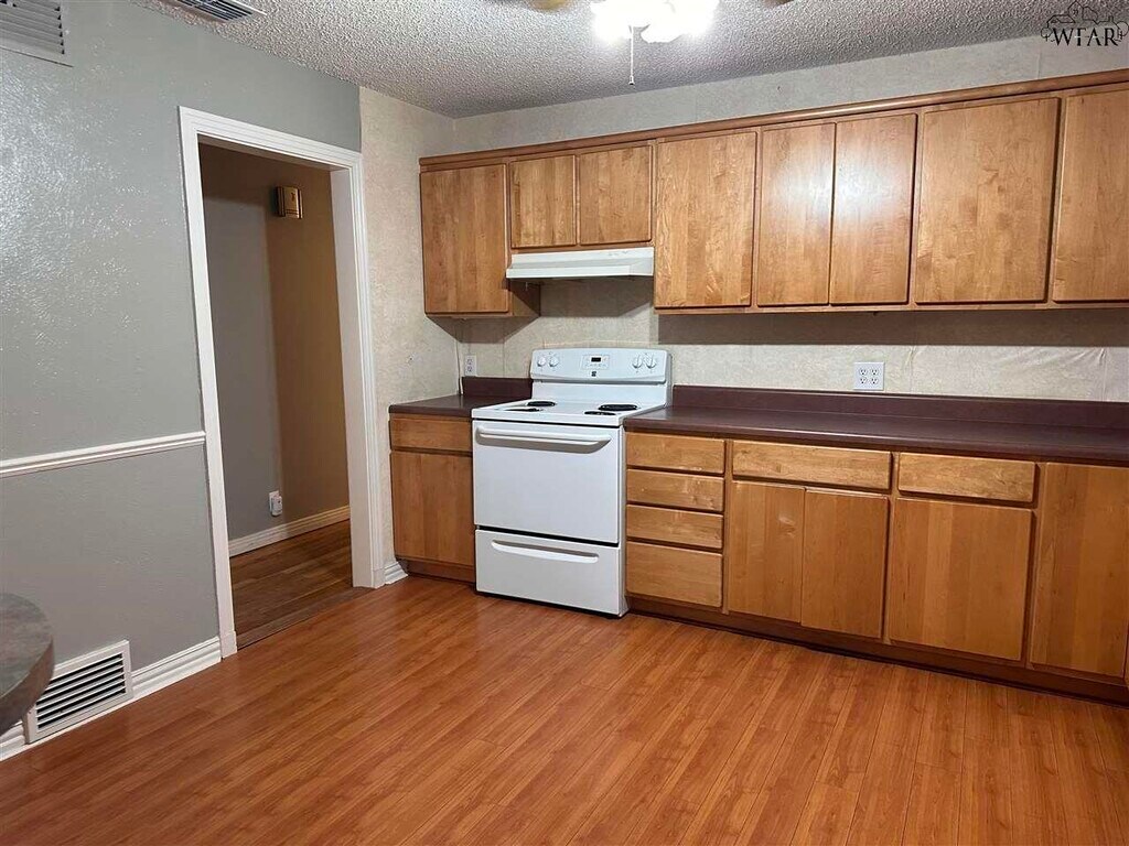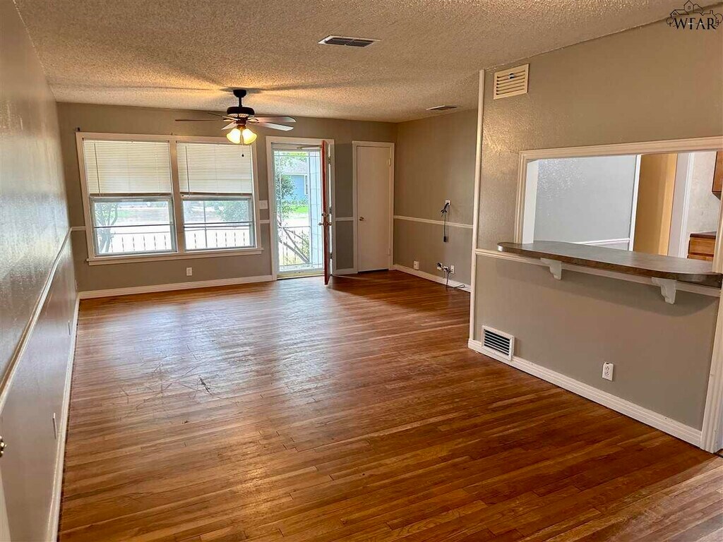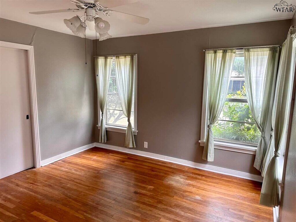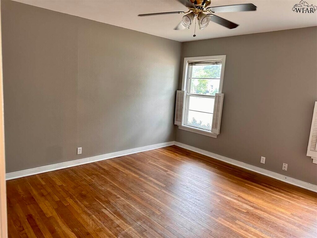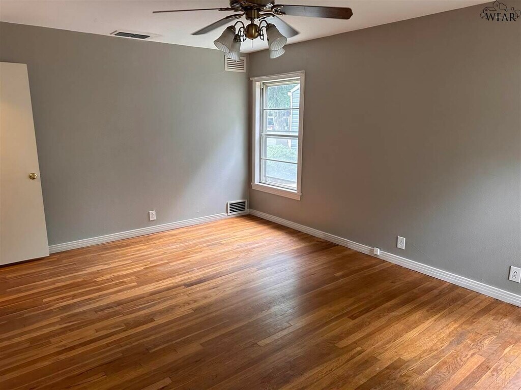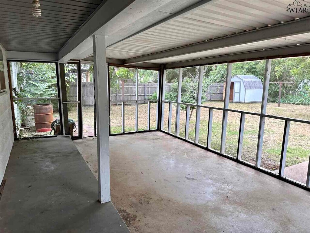 This charming 3 bedroom, one bathroom home could be just right for you! Located within walking distance of Midwestern, this home features original hardwood floors, spacious bedrooms, and a kitchen with breakfast bar. Large backyard with covered patio, a storage shed as well as a storm shelter. Attached one car garage with laundry hookups. $1400 Month. $1400 Deposit. $1350/month with 18 month lease. Small pet on case by case basis. Minimum 1 year lease.