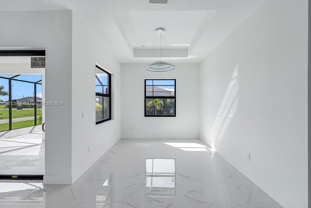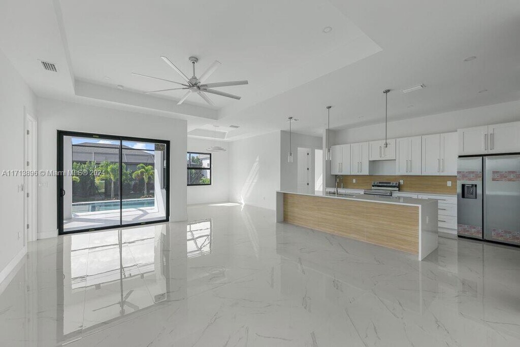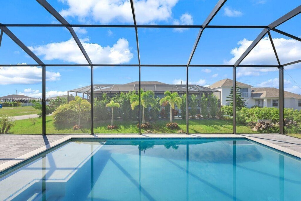 Discover your dream rental in Southwest Florida! This brand-new home in Northwest Cape Coral, west of Burnt Store Road, offers the perfect mix of tranquility and convenience near canals, golf courses, and entertainment. With 2,135 sq.ft. under air, it features 3 bedrooms, a den, 3 baths, and a 2-car garage. The open floor plan boasts high trey ceilings, a gourmet kitchen with waterfall quartz countertops, solid wood cabinets, and stainless smart appliances. Enjoy elegant marble-like tile, frameless glass showers, and a luxurious main bath with dual sinks and showers. Outside, relax on the covered lanai or swim in the screened pool with limestone pavers. Hurricane impact windows provide peace of mind. Experience Florida living at its best!