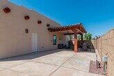 Furnished one bedroom villa located in gated community offering full access to onsite amenities during your stay. Short term rentals available upon request; pet ok with owner approval. Water, sewer, trash and basic cable included in monthly rate. (electricity & wifi not included) Villa includes open floor plan with large sectional, full size kitchen with stainless appliances, granite counters & tiled floors throughout. 3/4 bath features walk-in tiled shower. Queen size bed in bedroom. Separate utility room houses half bath, stackable washer/dryer and additional storage space. Property is fenced on both sides and at the back and offers a nice sized covered patio with outdoor furniture to enjoy the morning sunrise or evening sunsets. Ample parking for up to two vehicles and just a short distance to centrally located clubhouse. Two separate fenced-in dog parks onsite along with walking path around entire perimeter of boutique resort.