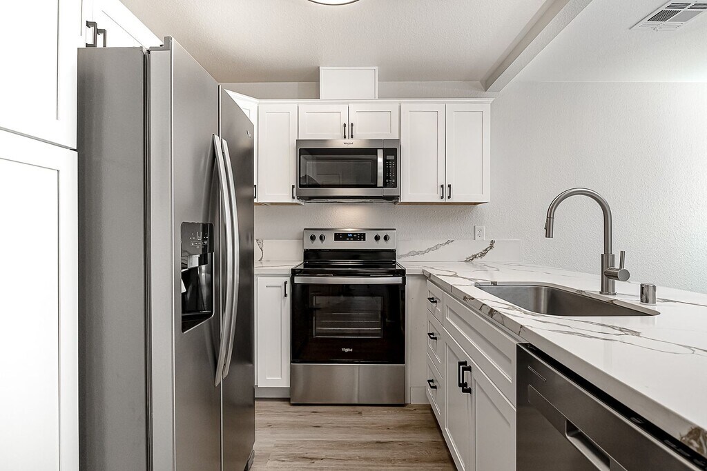 Introducing a stunning 2-bedroom, 2-bathroom condo in the desirable Walnut Grove gated community! This luxurious upstairs unit boasts vaulted ceilings, a corner fireplace, and a balcony perfect for enjoying the California sunshine. The remodeled chef's kitchen features quartz counters, bright white cabinetry, and top-of-the-line appliances including a dishwasher, built-in microwave, stainless steel range/oven and fridge. Deep single basin stainless steel sink facing the dining room and counter seating. The primary suite is flooded with natural light and includes a beautifully updated bathroom with quartz shower walls and vanity. Additional features include luxury vinyl plank flooring, stackable washer & dryer, and all new lighting fixtures and hardware. Residents of this gated community can enjoy amenities such as tennis courts, a swimming pool, and spa. Don't miss out on the opportunity to call this condo home! You're walking distance to major shopping such as Target and restaurants. Water, sewer and garbage are included in your rent. Pets are subject to approval and would require an increased deposit. Rent is $2200 with at least a six-month rental agreement. Security deposit is $2500. $50 non-refundable application fee. All persons over the age of 18 must apply and pay their own application fee. Please visit our website at or call for more details. Five Star Property Management Lic# 01 Wylie Dr Modesto, CA 95355 info@