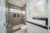 OPEN HOUSE SUNDAY 3/1. 3PM-5PM Set back from the street sits this reimagined 3 bed/2bath Silver Lake home with finished garage. Enjoy a large yard with patio shaded by mature olive trees, perfect for true indoor-outdoor living. The charming front porch welcomes you into a light filled living room with tons of original windows. Next, you'll find 2 bedrooms with equal amounts of light and character. The primary features an ensuite bathroom with a large walk in closet. The large, very functional kitchen is next to the dining room with its own patio. The home was thoughtfully renovated down to the foundation and features central air and heat, solid acacia hardwood floors, and a 240V outlet off the driveway for Level 2 EV charging. Located just a short walk to Cafecito Orgánico and the shops, restaurants, and everyday essentials along Hoover. This is a standalone home—no shared yard or driveway One-year lease minimum, two year lease preferred. All utilities paid by tenant. Gardener paid by landlord.