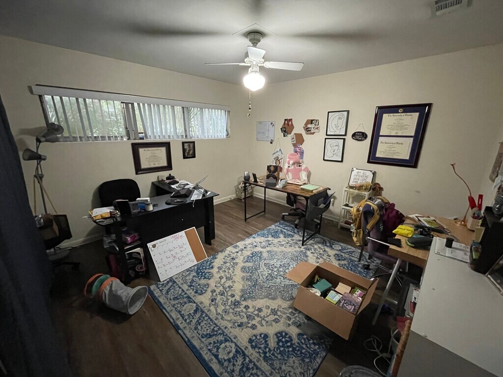 3/2 house for rent. Available August 1.Large bedrooms with wood laminate flooring. Large closets in all bedrooms.ceiling fans in all bedrooms.New roof. Updated kitchen.Plenty of parking.Close to UF and bus line. Lawn service provided.Great house for students or professionals. Large attached carport.