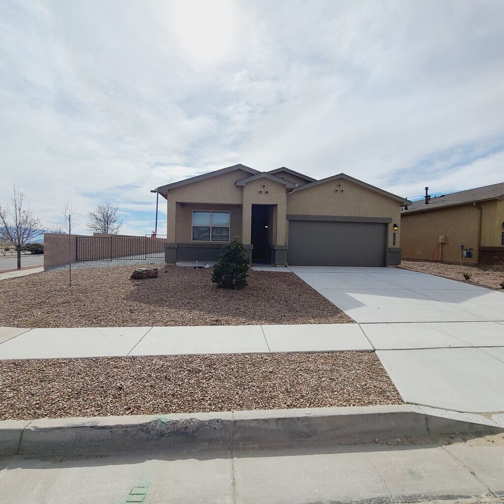 Welcome to this 3-bedroom, 2-bathroom home located in the vibrant community of Los Lunas, NM. This home is a perfect blend of comfort and modern living, offering a spacious garage and a large, fenced-in backyard. The patio is an ideal spot for outdoor relaxation, while the interior boasts a range of amenities including a dishwasher, stove/oven, refrigerator, and disposal. The home also features refrigerated air for those warmer days, and a washer and dryer in the unit for your convenience. The built-in microwave adds a touch of modernity to the well-equipped kitchen. Keyless entry ensures easy access and added security. The home is complemented by stunning views, enhancing the overall living experience. This property is perfect for those who appreciate a blend of comfort, convenience, and contemporary living.