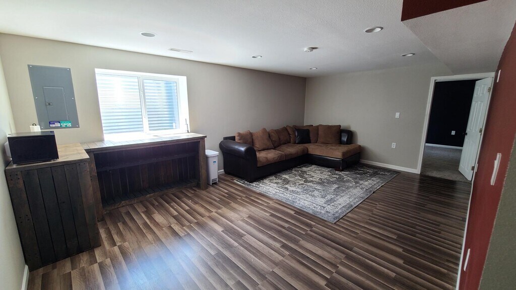 Well cared for 4 bedroom home with 3 bedrooms, 1 bathroom, living room, kitchen/dining and storage closets all on the main floor. Downstairs features a large family area, generous bedroom, bathroom, laundry room with washer and dryer, and lots of storage. Outside the backyard is completely privacy fenced in! The detached oversized (24x22) garage is fully finished, insulated, with shelves and cupboards. The large driveway has ample parking availability. Located on a quiet street! Tenant pays all utilities, mows the lawn, and shovels the driveway. No smoking, no evictions, dogs upon approval Well cared 4 bedroom home with 3 bedrooms, 1 bathroom, living room, kitchen/dining and storage closets all on the main floor. Downstairs features a large family area, spacious bedroom, bathroom, laundry room with washer and dryer, and lots of storage. Outside the back yard is completely privacy fenced in!! The detached oversized (24x22) garage is fully finished, insulated, ...