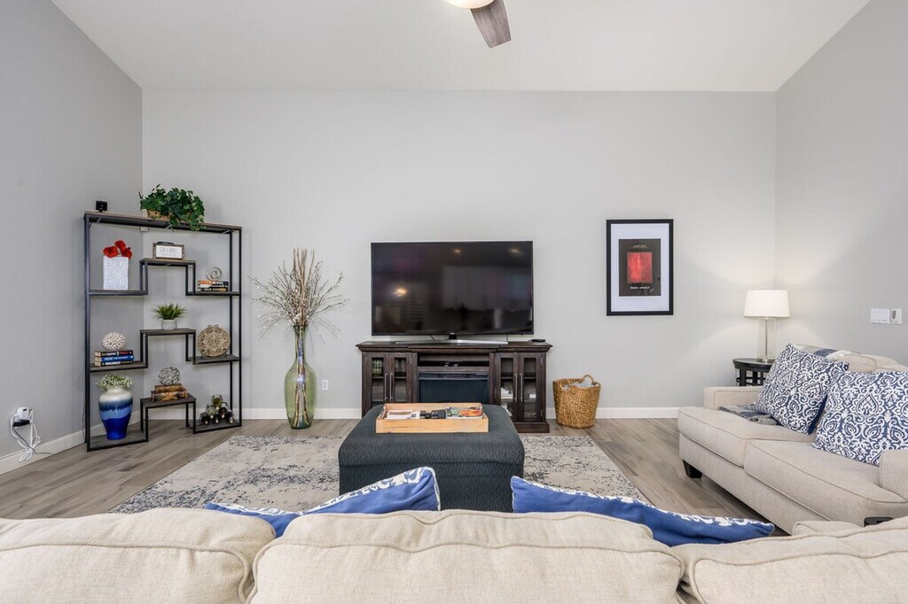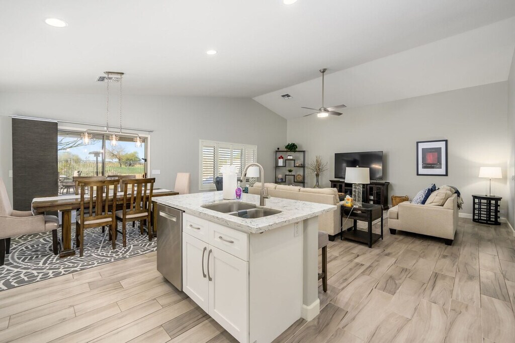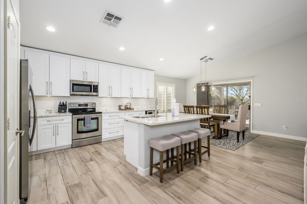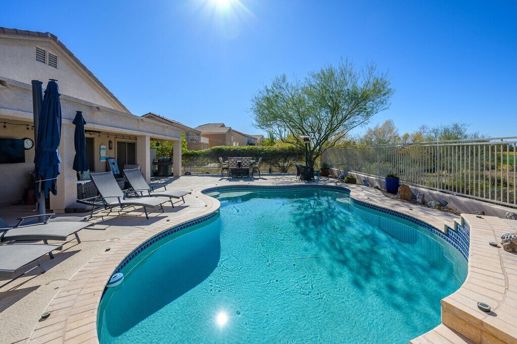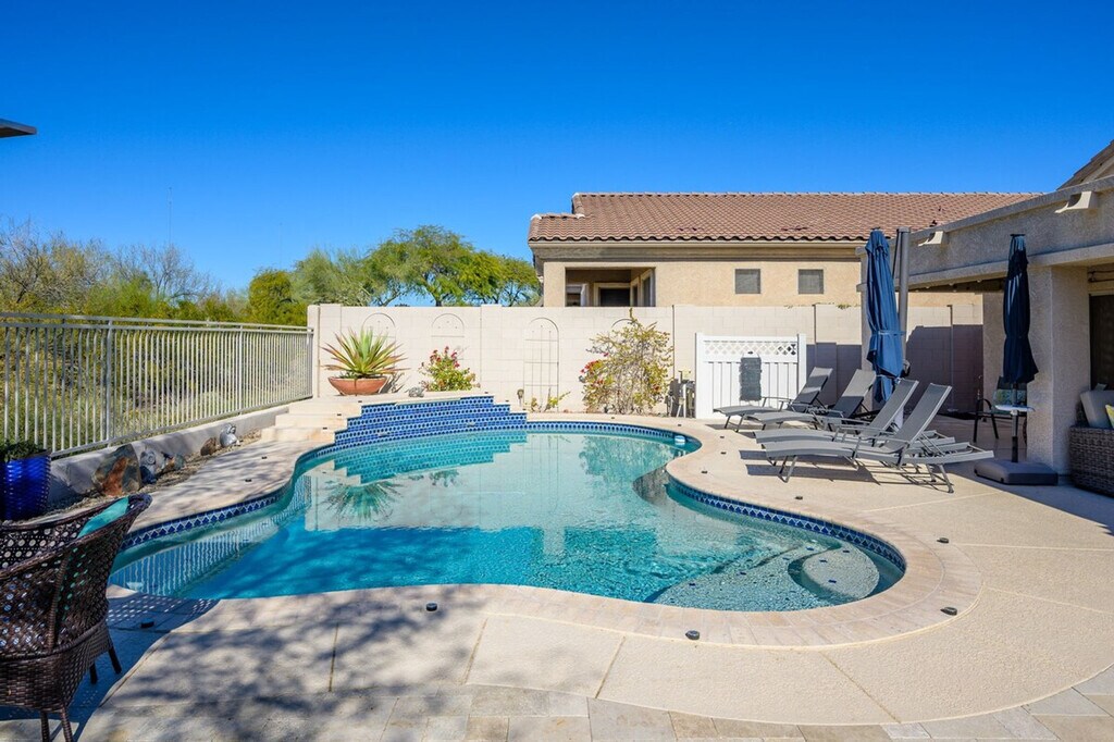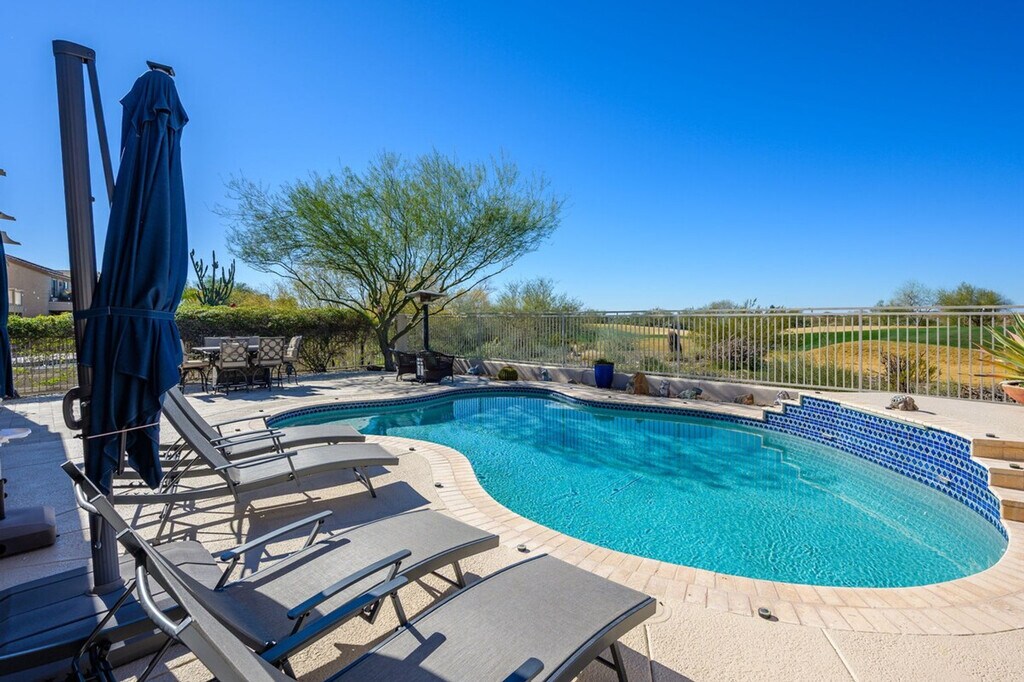 The advertised rate of $10,341/month is the lowest available price, based on a 30 day(s) stay with a move-in date of March 31, 2026. Rates vary depending on the duration of stay, season, and other parameters. For exact pricing and additional pricing components, please visit our website and enter your desired move-in and move-out dates. The rate is applicable when billed upfront; it can be higher if billed in multiple payments. Feel at home in this 3-bedroom, 2-bath home overlooking the 2nd hole of the Dove Valley Ranch Golf Course, facing west for amazing sunsets. This home is all on one level, with no stairs. The great room boasts new porcelain wood-grain tile, modern cabinets, and quartz countertops. The master bedroom offers a king-size bed, large flat screen TV, attached master bath, walk-in closet, and a slider to access the backyard and views. The 2nd guest bedroom offers a queen-size bed and a television. The 3rd guest bedroom can be used as an office with television, or the Murphy bed can easily be pulled down, which offers a real queen-size mattress. Additional sleeping arrangements can be made on the queen sleeper sofa in the living room. All linens, bath, and pool towels are provided, and free Wi-Fi is included. You will also find a large TV on the patio to watch from the pool or lounge chairs. The garage can accommodate 1 car only, but any additional cars can be parked in the driveway. Close by, you will find the Cave Creek Regional Park with many walking, hiking, and biking paths. Take the included bikes for a ride! For the golfers, the Dove Valley Ranch Golf Club is at your back door! Another favorite is the Rancho Manana Golf Club close by as well. No pets are allowed. The pool is not able to be heated in the winter. Guests are liable for any damages caused to the property. [SI]