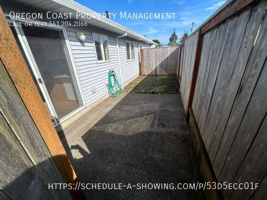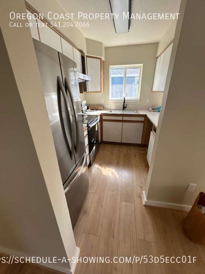 Oregon Coast Property Management $2000 Monthly $4000 Security Deposit 2 bedroom 2 bath duplex with 2 car garage, Back Patio, New appliances and hardware. Great neighborhood, near High school. Owner provides front yard landscaping. Please read and agree to our policy and procedures prior to scheduling a showing. 2 Car Garage Refrigerater Stove