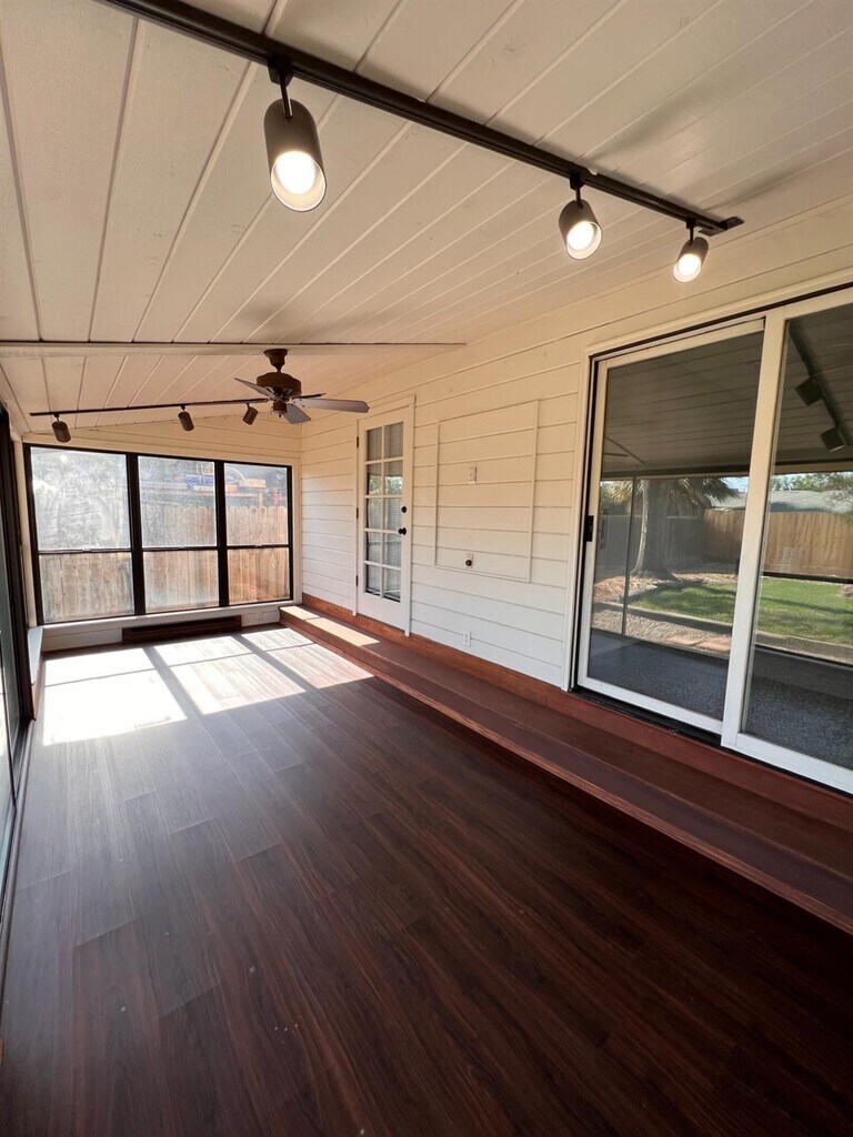 This home has a beautiful landscaped front and backyard, along with 2 bedrooms, 1 bathroom. There is a functional floor plan with a large living space, separate dining room, huge sun room and kitchen with plenty of cabinet space! There is newer wood laminate plank floors in the kitchen and bathroom. The bathroom has been updated with a shower/tub, granite countertop, dual basins, and modern mirrors for a sleek finish. This home comes with a washer, dryer, and refrigerator as is! Renters insurance is required. Yard and pest control included.