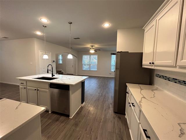FREE SOLAR ENERGY - LOW OR NO ELECTRIC BILL! This beautiful farmhouse in the Heartland Community and Crandall ISD (Hollis Dietz Elementary, Heartland Middle School) offers an open floor plan with a kitchen area featuring quartz countertops, ample cabinet space, a walk-in pantry, and stainless steel appliances. The home includes two living areas and split bedrooms, with the primary suite on the first level, boasting a spacious bathroom with a separate tub, shower, and walk-in closet. Upstairs, you’ll find two additional bedrooms and a large game room. The property has vinyl plank floors on the main level, carpet on the second level, two side backyards, and a two-car garage. Notably, the landlord covers the cost of rooftop solar panels, significantly reducing the monthly electric bill and lowering the cost of living for tenants compared to other properties. Enjoy the community amenities, including a pool, fishing spots, fitness center, jogging and bike paths, a lake, park, and playground.