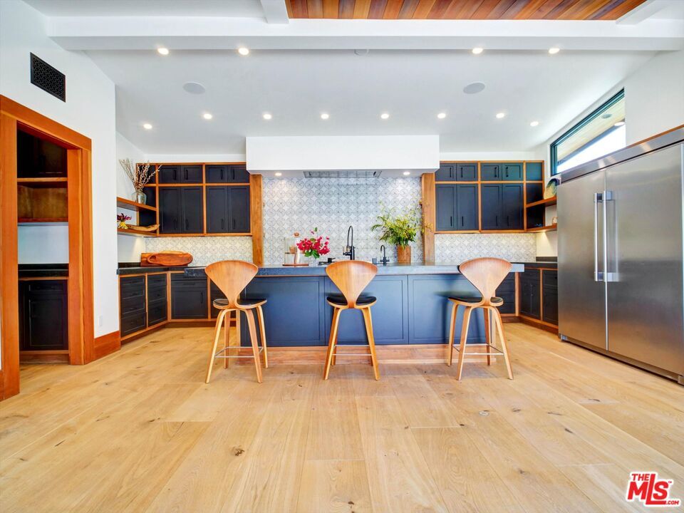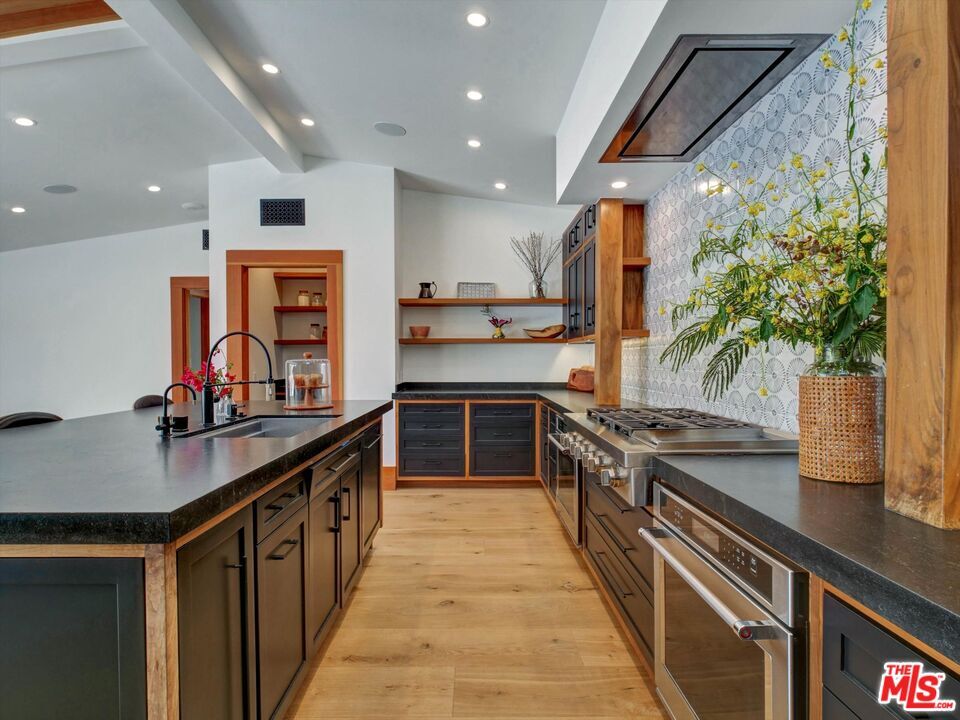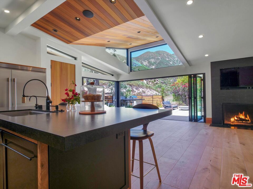 Tucked away on a quiet cul-de-sac in coveted Malibu's Sunset Mesa enclave, this private garden estate offers a rare blend of privacy, resilience, and elevated coastal living just moments from the ocean. This thoughtfully upgraded residence stands as a testament to quality and care, having fully survived the Palisades fires and subsequently undergoing extensive remediation and enhancements to meet today's highest standards. Ideally situated within close proximity to Santa Monica, Palisades and it's schools, and within the highly regarded Malibu school district, this home is designed for comfort and entertaining. The home features a gourmet custom kitchen outfitted with professional-grade appliances, including a 6-burner range with griddle, dual stoves, a full-size commercial refrigerator, and a restaurant-quality nugget ice machine. An under-sink water filtration system and seamless connectivity to adjacent living spaces make it as functional as it is refined. Indoor-outdoor living is at the forefront, with extra-tall windows and sliders flooding the interiors with natural light and opening to lush, meandering garden spaces. Every room enjoys direct outdoor access and tranquil garden views, creating a seamless connection to nature. The grounds are a curated retreat, featuring mature fruit trees (avocado, Meyer lemon, blood orange, lime, mandarin, passion fruit, and fig) alongside hand-built stone walls, a low-water lawn, and multiple areas for gathering, including an outdoor kitchen, dining area, and gas firepit. The home is equally well-equipped for modern living, offering FiOS fiberoptic high-speed internet, a fully integrated Sonos sound system wired throughout the interior, including a bedroom that's equipped to serve as a media room. Smart Home features include Nest/Google security cameras, while practical upgrades such as solar panels, a whole-house generator hookup, and a brand-new HVAC system (including in the garage/bonus space) ensure efficiency and peace of mind. Additional highlights include a private primary suite with custom closets, built-in office and shelving, two full bathrooms plus a powder room, and both gas and wood-burning fireplaces. With mountain views, exceptional privacy, and close proximity to Malibu's iconic coastline, this is a turnkey opportunity in one of the area's most desirable neighborhoods. MLS ID 26788455