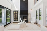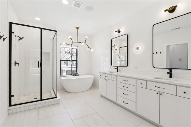 Customized beyond builder grade, this stunning two-story home sits on a corner lot filled with natural light. Discover exceptional craftsmanship and custom designer finishes throughout. The light-filled interior boasts an open layout with a spacious living room highlighted by soaring ceilings, a designer chandelier, and a new fireplace. The updated kitchen features sleek new Bianco Lasa Macchia Vecchia marble countertops, premium Café appliances, and abundant storage. The first floor is complete with a thoughtfully added workspace with an abundance of natural light, perfect for working from home. Upstairs, the luxurious primary suite includes an ensuite bath with dual vanities, a soaking tub, a separate shower, and closets outfitted by California Closets. Three additional guest bedrooms offer generous space and comfort. Thoughtful details such as custom window treatments from the Shade Store, name brand light fixtures throughout and a new integrated sound system complete this meticulously curated home.