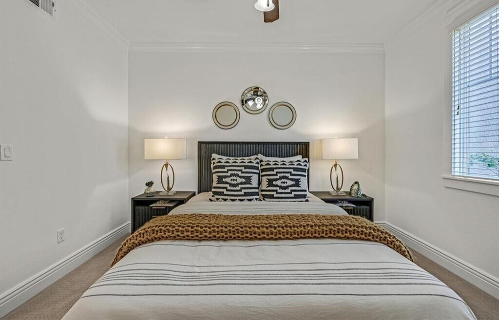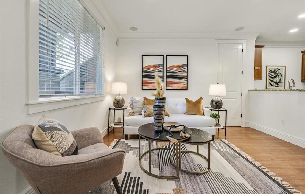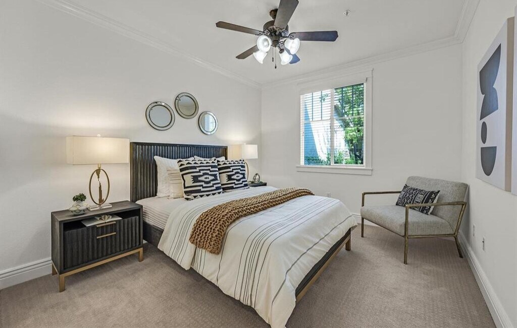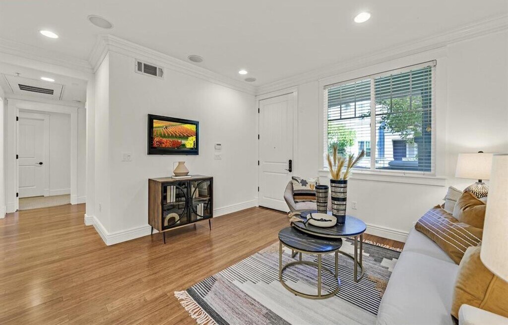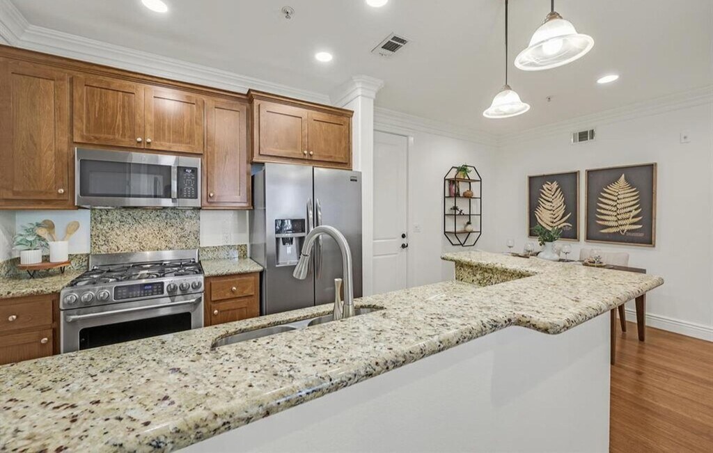 Live in luxury in this beautifully upgraded condo, ideally located just steps from the Iron Horse Trail. This ground-floor home offers 2 bedrooms, 2 bathrooms, an attached 1-car garage, and a deeded parking space. The chef’s kitchen features shaker-style cabinets, slab granite countertops, and stainless-steel appliances including refrigerator, gas range and stove, dishwasher, disposal, and microwave. A formal dining area sits just off the kitchen, opening into a light-filled living room with high ceilings and crown molding. From here, step out to your private gated patio overlooking the greenbelt. The gorgeous primary suite includes a walk-in closet with custom organizers, a ceiling fan, and a spa-like bathroom with an oversized shower. The second bedroom sits across from a full bathroom, making it perfect for guests or a home office. Additional highlights include: Hardwood floors Fresh neutral paint Wood blinds Laundry in the garage with washer and dryer included. Pets allowed with $500 added to deposit per pet. Up to $50 in water bill covered, over $50 is tenant responsibility. Tenant responsible for garbage bill. The home is not furnished. All this in a prime Danville location—close to Costco, shops, restaurants, freeway access, and award-winning Danville schools.