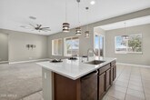 Spacious split floorplan home features 4 bedrooms with walk-in closets,3 full bathrooms,10 ft. ceilings,office/flex room,and formal dining room. Kitchen showcases 42'' birch cabinets,quartz counters and backsplash,5 burner gas stove,single bowl sink,pendent lights,recessed lighting,RO system,walk-in pantry,breakfast nook,and center island with breakfast bar. Gorgeous primary suite measures 17'7''x14'. En suite has large W.I.C.,center bank dual sink vanity,soaking tub,linen closet,walk-in shower with bench and rain showerhead. Private backyard with no neighbors behind. Home boarders a walking/biking path. Separate 1-car garage with door entrance is perfect for storage or a 3rd car. The 2-car garage has a utility door that opens to RV gate. The 427 acre master-planned community features scenic walking/biking paths,sand volleyball courts,basketball courts,soccer field,baseball backstop,ramadas with picnic tables,schools,tot lots,10+ shaded playgrounds,and large greenbelts. Home is conveniently located near schools,parks,retail,restaurants,entertainment,Spring Training,Goodyear Civic Center,Goodyear Recreation Center,I-10,and loop 303.