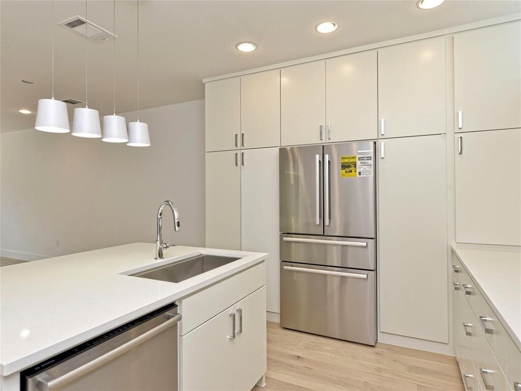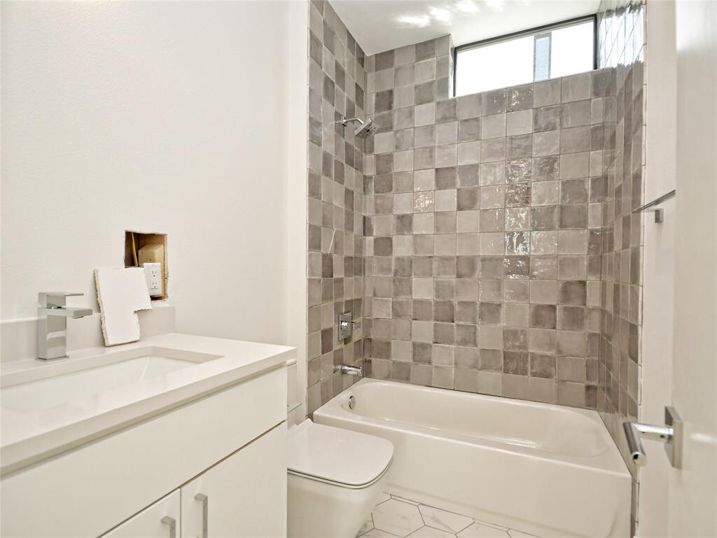 Rooftop Terrace, Downtown Views, Prime East Austin Location, Secure 2-car Garage, Luxury Finishes. Built in 2021, this stunning three-bedroom, three-and-a-half-bath detached luxury residence offers contemporary design, high-end finishes, and a rooftop deck with breathtaking downtown views. Designed for both privacy and functionality, the layout includes one bedroom with an ensuite bath on the ground floor, perfect for guests or a home office. Upstairs, two spacious bedrooms await on the third floor, including a luxurious primary suite with a walk-in closet and an en suite bath featuring a skylit walk-in shower. The open floor plan is flooded with natural light from oversized windows, highlighting beautiful white oak wood floors, quartz countertops, and designer tile. The gourmet kitchen is both stylish and functional, featuring Bosch appliances, a center island, and plenty of storage. The real showstopper is the expansive rooftop deck with stunning city views, ideal for entertaining or unwinding under the stars. Additional conveniences include a secure two-car attached garage, a small fenced yard, and included appliances - refrigerator, washer, and dryer. Located in the heart of 78721, this home places you just minutes from Mueller, UT, Downtown Austin, and ABIA. East Austin is known for its vibrant restaurant scene—enjoy iconic spots like Franklin Barbecue, Hillside Farmacy, and Justine’s. The neighborhood is also home to live music venues, art galleries, and unique local businesses, making it one of the most exciting areas in the city. With its prime location, rooftop terrace, and upscale modern design, this home offers the perfect blend of urban energy and luxury living. Experience modern East Austin living at its finest in Unit 3 at theSeventeen. MLS ID 1463933