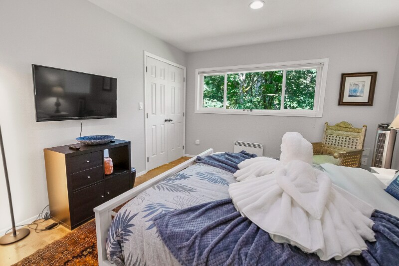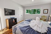 Property Id: 2156468 The 3 level condo (1 bed up; 1 bed down; living/kitchen on entry level) is next to a bird sanctuary and next to Discovery Park. It is very walkable and the area also has dedicated biking lanes. The balcony is under the trees! Washer/Dryer upstairs; a smart TV in each bedroom, this is an ideal place to settle for a temporary job in Seattle.