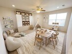View 360° virtual tour: Spacious home featuring a cozy living room with a corner wood-burning fireplace and a well-equipped kitchen offering ample counter space, abundant cabinets, and a walk-in pantry. The kitchen includes all electric appliances, an eat-in dining area, plus a separate formal dining room perfect for entertaining. The split floor plan places the primary suite downstairs with a private bath featuring a double vanity, garden tub, separate shower, and an oversized walk-in closet. Upstairs you’ll find additional bedrooms, a full bathroom, and a loft overlooking the foyer—ideal as a second living area. Enjoy the covered back patio and privacy-fenced backyard. Pet friendly per policy with deposit. Appointments aren’t required to tour. Contact us or stop by our Killeen office to learn more and see this home in person once it becomes available! We are located at 1020 W Jasper Dr, Killeen, TX 76542. Disclaimer: The furnishings or enhancements shown are AI-generated and intended for inspiration only. They may not reflect the actual scale, condition, or current features of the property.
