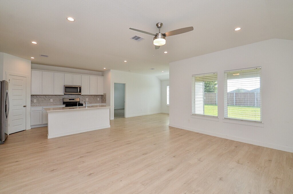 Welcome to this stunning 4-bedroom,2-bath home perfectly located in sought-after Tamarron,minutes from I-10 & FM 1093! Step inside to an open-concept design that’s perfect for modern living. The spacious family room,filled with natural light,flows seamlessly into the gourmet kitchen and casual dining area. The kitchen is a chef’s dream with white cabinets,quartz countertops,stainless steel appliances,a large island,walk-in pantry,plus refrigerator,washer,and dryer included! The primary suite offers a private retreat with a walk-in closet,dual sinks,and an extended shower. Three secondary bedrooms share a full bath with a tub and elegant cultured marble counters. Enjoy stylish luxury vinyl plank floors in the main living spaces,cozy carpet in bedrooms,and a covered patio overlooking a large backyard—perfect for relaxing or entertaining. Lamar Consolidated School Disitrict. Move-in ready! MLS# 69412127