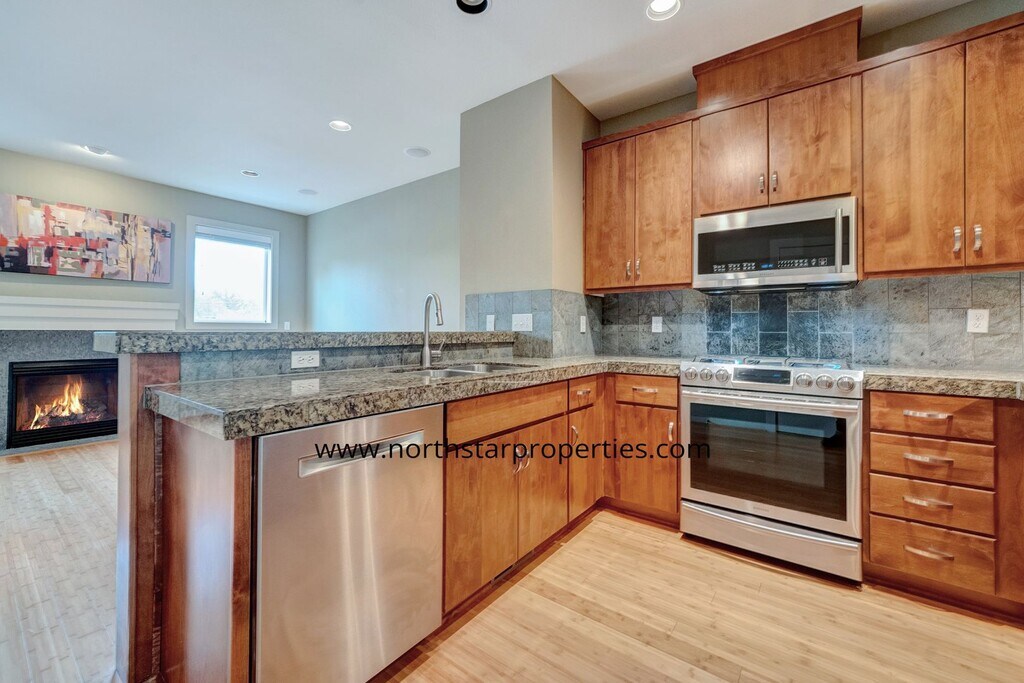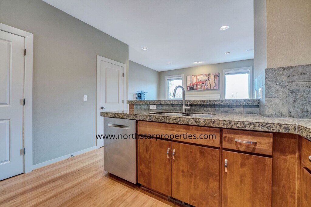 Located in the heart of vibrant Multnomah Village, this fabulous townhome has it all. You will fall in love with the convenient location. Just one block from restaurants, shops and breweries. Close to several grocery stores and OHSU, as well as easy access to I-5 and one block from bus stops. As you enter on the ground level, you are greeted by a nice office or flex space which leads to the one car garage, with one additional parking space in the back driveway. The main level features beautiful bamboo floors, tall ceilings and an abundance of light from the large windows. The dining room is quite spacious with the gorgeous kitchen and living room right around the corner. The kitchen features granite counters, rich wood cabinetry, breakfast bar, pantry closet and a new range, microwave, garbage disposal and dishwasher! The living room is inviting with its cozy gas fireplace and includes a built-in floating media console and TV wall mount. A powder bath completes this level. Upstairs offers two primary bedrooms with en suites. One features a tub/shower combo and the other a walk in shower. Both rooms are extremely light and bright. The washer and dryer are conveniently located on this level as well. Enjoy this well appointed townhome and all that Multnomah Village has to offer right outside your front door! Small dogs allowed and cats allowed. No smoking please. Maplewood Elementary, Jackson Middle School and Ida B. Wells-Barnett High School. Please see our website for information on application requirements. Click "Apply Now" for screening criteria. We will begin processing applications within 72 hours of 6/27/23. This dwelling unit does not qualify as a 'Type A Unit' (accessible unit) per Oregon structural building code and ICC A117.1. Please refer to our website listing for an accurate reflection of amenities reported by the owner: