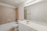 This spacious home is move-in ready and offers comfort, style, and flexibility. The first floor features an open-concept living area and a modern kitchen with stainless steel appliances, a breakfast bar, and a casual dining space. A formal living room, dining room, and a versatile 4th bedroom that can also serve as an office are located on the main level. The primary suite is conveniently situated on the first floor and includes a walk-in closet, dual sinks, and a separate tub and shower. Upstairs, you’ll find two additional bedrooms, a full bath, and a large flex space—perfect for a game room or second living area. The backyard provides plenty of space for outdoor entertaining, with room for evening barbeques and gatherings.
