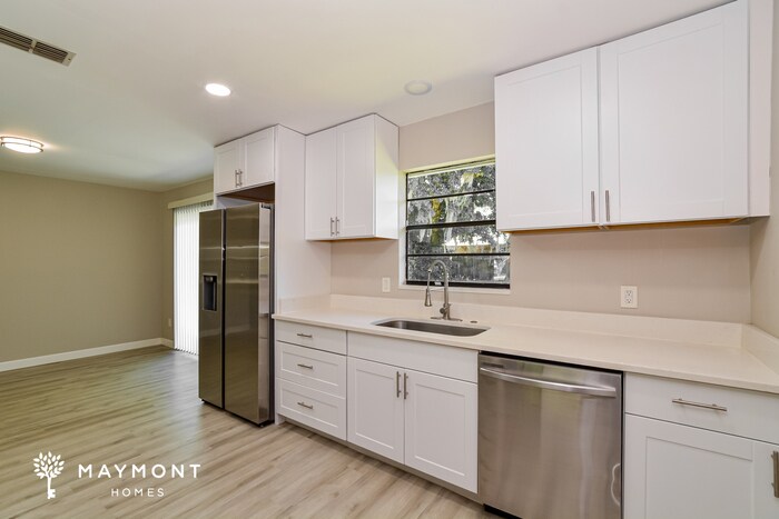 MOVE-IN READY This home is move-in ready. Schedule your tour now or start your application today. Monthly Recurring Fees: $25.00 - Smart Home $10.95 - Utility Management Step into a home that feels open, bright, and easy to enjoy from the moment you walk in. Located at 3409 Silver Palm Drive in Edgewater, FL, this 3-bedroom, 2-bathroom home with 1,222 square feet offers a single-story layout designed for comfortable living with a seamless flow throughout. Inside, the main living area features light-toned flooring and recessed lighting, creating a clean and airy atmosphere. The open layout connects the living, dining, and kitchen spaces, allowing for flexibility in how you use each area. Large windows and a sliding glass door bring in natural light while offering a view of the backyard. The kitchen is positioned at the heart of the home, showcasing white cabinetry, ample counter space, and stainless steel appliances, along with a peninsula that adds both workspace and seating options. Its layout keeps everything within reach while maintaining a connection to the main living area. The bedrooms are thoughtfully arranged, each offering comfortable layouts, ceiling fans, and closet storage. The primary bedroom provides a spacious retreat with easy access to a bathroom featuring a walk-in style tiled shower and updated fixtures. The additional bathroom supports the remaining bedrooms with practical finishes and functionality. Step outside to a generously sized backyard, offering plenty of room to set up seating, enjoy outdoor activities, or simply take in the surroundings. The space extends the home’s living area and adds flexibility for everyday use. Located in Edgewater, this home is approximately 15 minutes from New Smyrna Beach and about 30 minutes from Daytona Beach, placing you close to coastal destinations, dining, and local attractions. With its open layout, bright interior, and spacious outdoor area, this home offers a well-rounded living experience in a convenient location. Apply Now! *Maymont Homes provides residents with convenient solutions, including simplified utility billing and flexible rent payment options. Contact us for more details. This information is deemed reliable, but not guaranteed. All measurements are approximate. Actual product and home specifications may vary in dimension or detail. Images are for representational purposes only. Some programs and services may not be available in all market areas. Prices and availability are subject to change without notice. Advertised rent prices do not include the required application fee, the partially refundable reservation fee (due upon application approval), or the mandatory monthly utility management fee (in select market areas.) Residents must maintain renters insurance as specified in their lease. If third-party renters insurance is not provided, residents will be automatically enrolled in our Master Insurance Policy for a fee. Select homes may be located in communities that require a monthly fee for community-specific amenities or services. For complete details, please contact a company leasing representative. Equal Housing Opportunity. Estimated availability date is subject to change based on construction timelines and move-out confirmation. This property allows self guided viewing without an appointment. Contact for details.