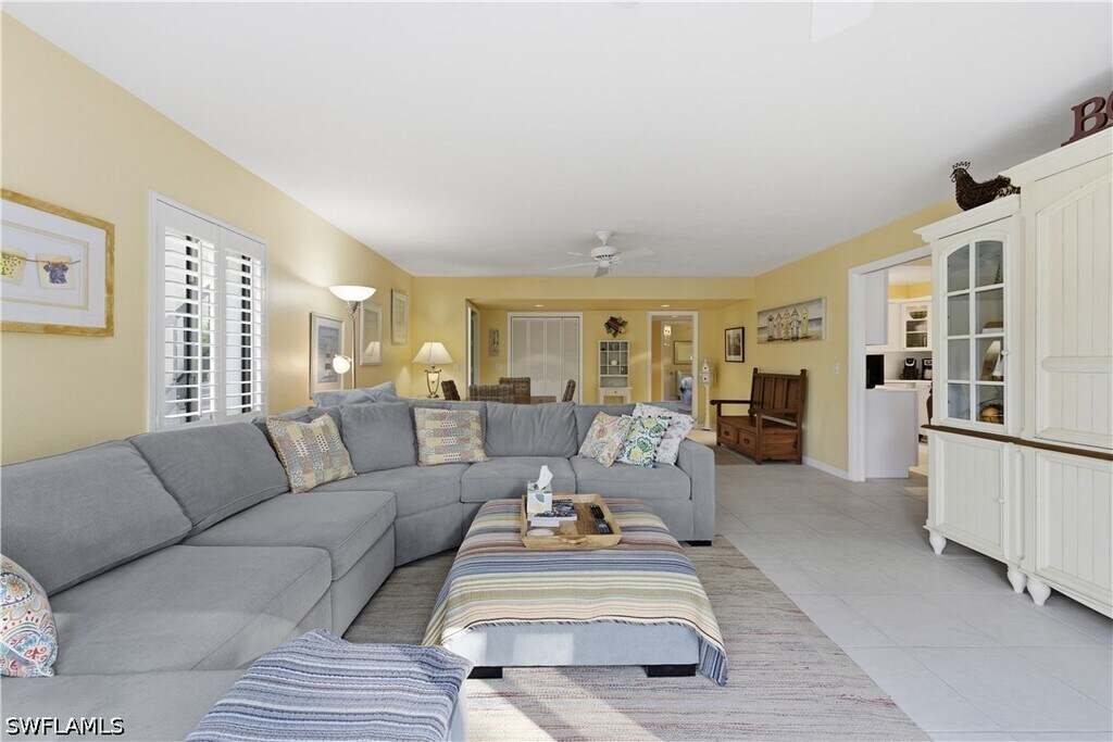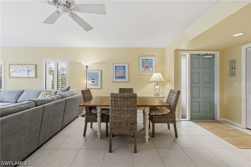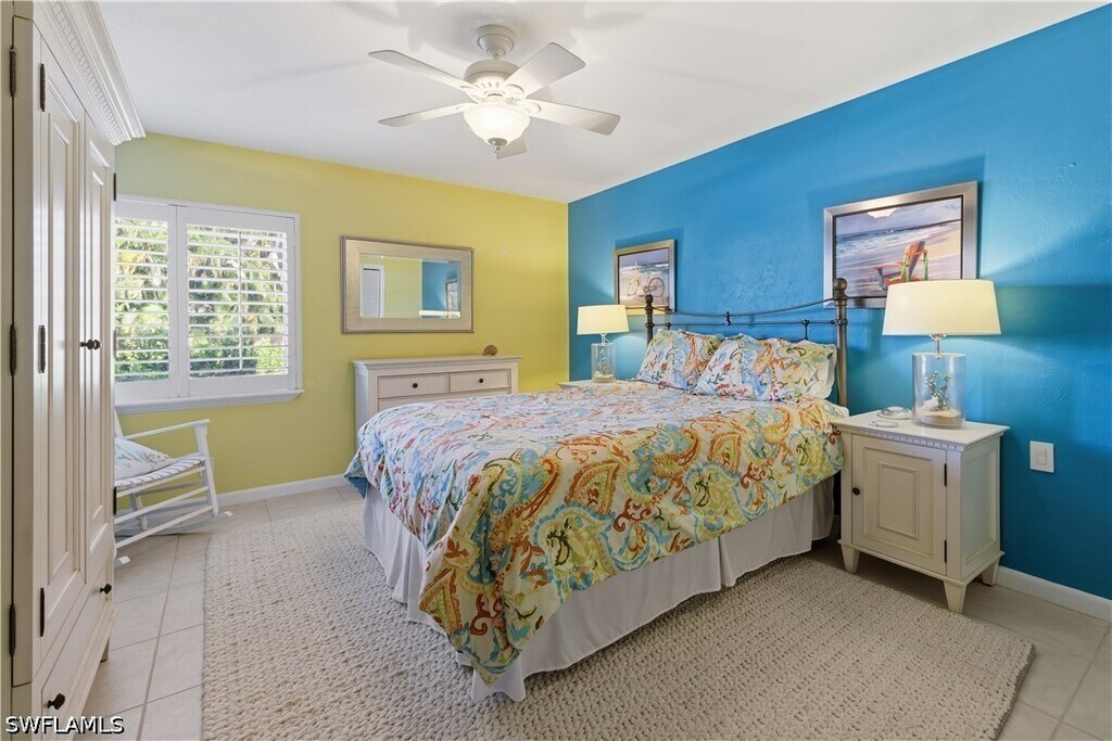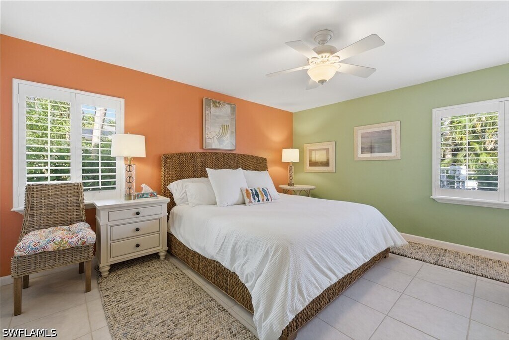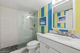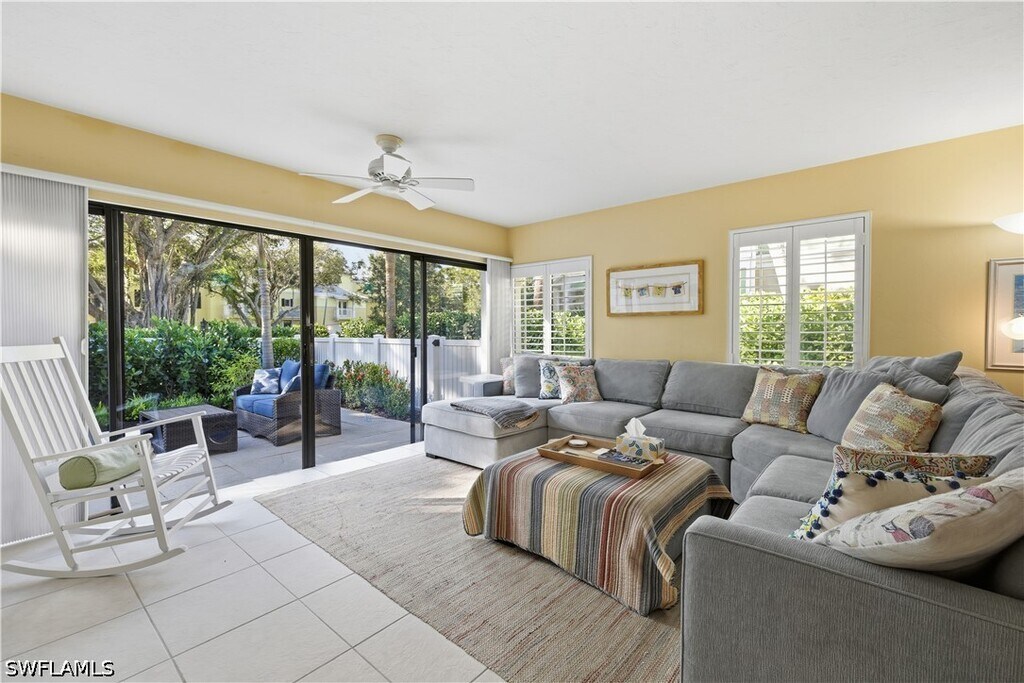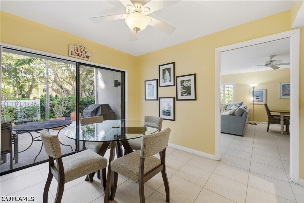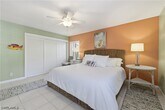 Guests will enjoy this Lovely,cheerful and colorful property only 2 blocks to 5th Ave. S. in Old Naples. Walk to the beach (3 blocks) and walk to all the restaurants,shops and galleries for which Old Naples is famous! All this is possible and still enjoy reasonable rent. The living room offers a sofa and loveseat,TV,and sliding glass doors leading to a large patio with cushioned furniture for your outdoor seating with additional table for dining. There is an expandable wood table in the living area which opens to accommodate 6. In addition,there is a kitchen table and 4 chairs. The flooring is tile throughout the condo in keeping with the beach atmosphere. The kitchen is sizable and very well equipped and completely updated. The master bedroom offers a king bed,large closet,chair and TV plus its own bathroom with shower. The guest bedroom has twin beds,a closet and TV and the hallway bathroom with shower is next to the guest bedroom. There is a washer and d