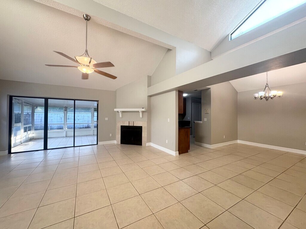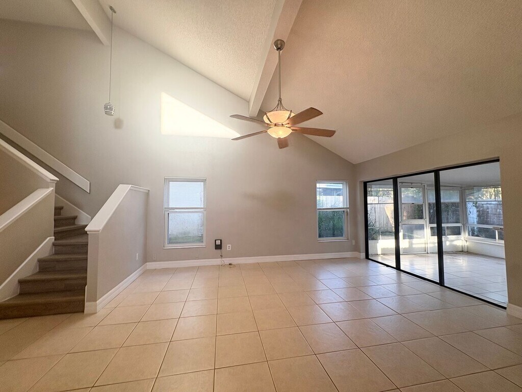 You have to come see this home to appreciate it! The kitchen has upgraded cabinets, granite counters and stainless steel appliances. The downstairs has 16" tile floors in the family room which has huge 20 foot ceilings and is right off the dining room and kitchen. The family room has a fireplace and leads to a large screened patio that is also tiled. The back yard is fenced. The master is downstairs with an attached bath and there is also another 1/2 bath downstairs. Upstairs are the other 2 bedrooms, a bath and a great loft area. It is zoned for all the best Lake Mary Schools - Lake Mary Elementary, Greenwood Lake Middle, and Lake Mary High School. Rental application fee is $55.00 per adult There is a one-time $100.00 admin fee due at lease signing
