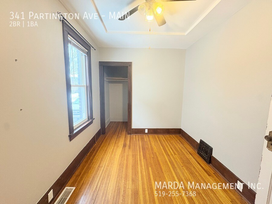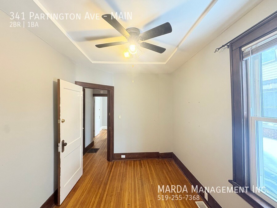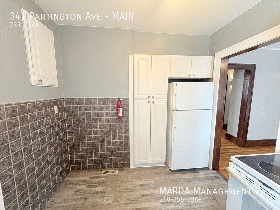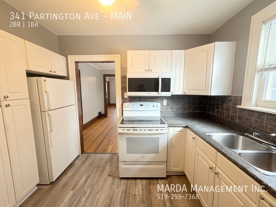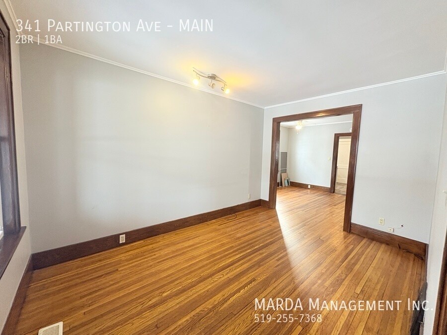 Welcome to 341 Partington, a bright and well-maintained 2 bedroom, 1 bathroom main floor unit located in a duplex. This home offers a comfortable layout with classic charm and practical features throughout. The unit features hardwood flooring throughout and plenty of windows, allowing for excellent natural light. The kitchen has been updated with brand new laminate flooring and refreshed cabinetry, offering a clean and functional space for everyday use. Both bedrooms are nicely sized, each with its own closet and window. The bathroom includes a tub/shower combo, and the hallway between the bedrooms offers built-in wall storage, adding convenient extra space. In the basement, tenants have access to shared laundry facilities and additional storage space. The backyard is shared, providing outdoor space to enjoy. Tenants are responsible for hydro and gas. First and last months rent and a credit check are required. One-year minimum lease. Professionally managed by MARDA Management, offering 24/7 maintenance support with a live agent and easy, convenient rent payment options. Call MARDA MANAGEMENT today at 226-455-9588or Email to schedule your viewing! Fenced Back Yard Freshly Painted Front Porch No Smoking Allowed Pet Friendly Shared Back Yard