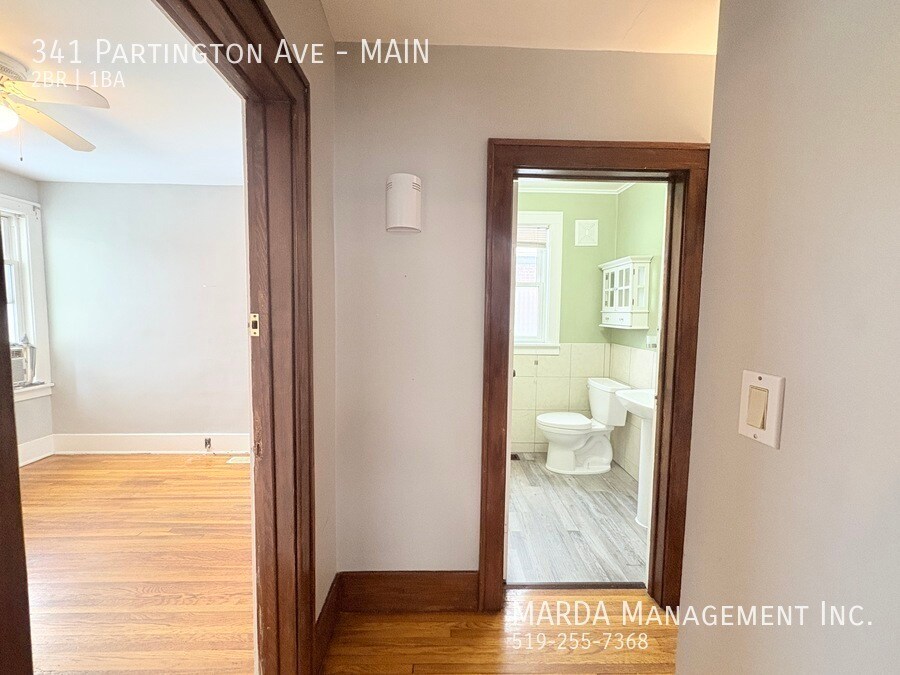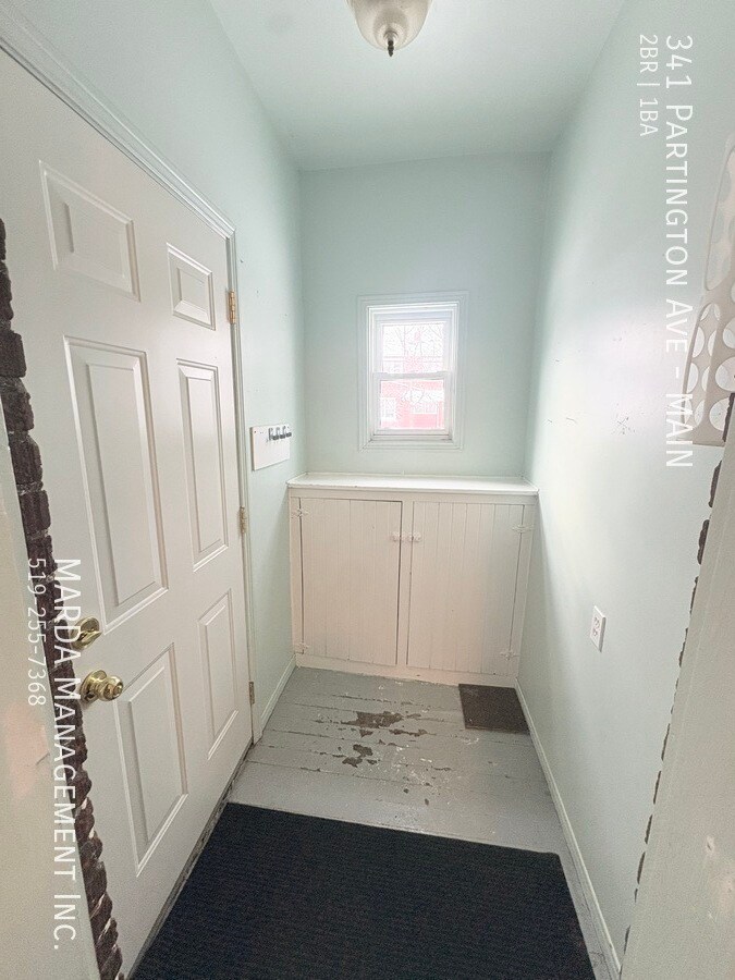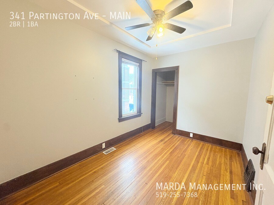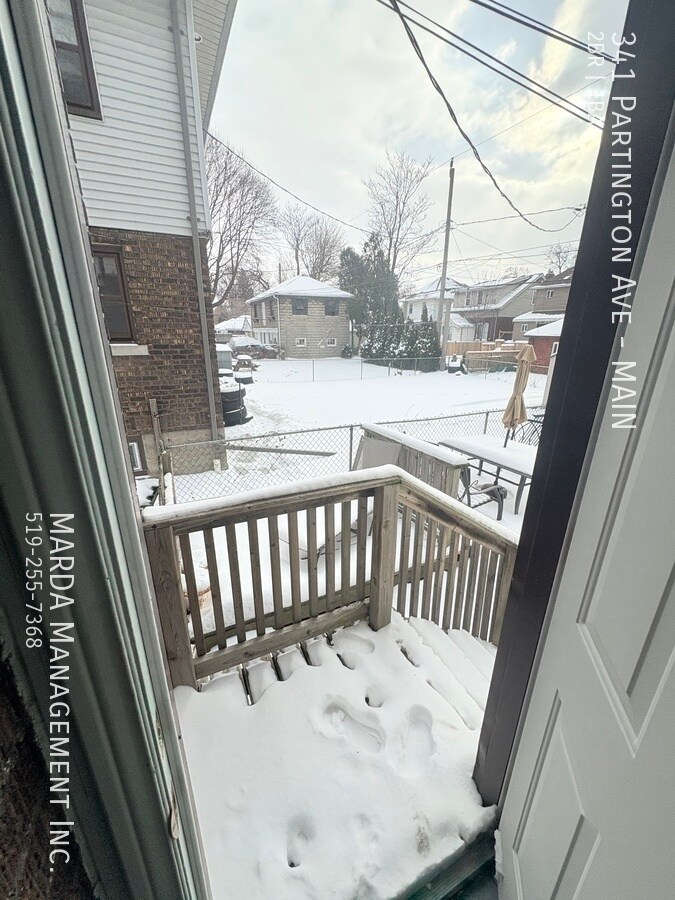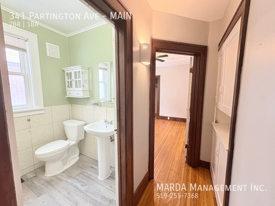 Welcome to 341 Partington, a bright and well-maintained 2 bedroom, 1 bathroom main floor unit located in a duplex. This home offers a comfortable layout with classic charm and practical features throughout. The unit features hardwood flooring throughout and plenty of windows, allowing for excellent natural light. The kitchen has been updated with brand new laminate flooring and refreshed cabinetry, offering a clean and functional space for everyday use. Both bedrooms are nicely sized, each with its own closet and window. The bathroom includes a tub/shower combo, and the hallway between the bedrooms offers built-in wall storage, adding convenient extra space. In the basement, tenants have access to shared laundry facilities and additional storage space. The backyard is shared, providing outdoor space to enjoy. Tenants are responsible for hydro and gas. First and last months rent and a credit check are required. One-year minimum lease. Professionally managed by MARDA Management, offering 24/7 maintenance support with a live agent and easy, convenient rent payment options. Call MARDA MANAGEMENT today at 226-455-9588or Email to schedule your viewing! Fenced Back Yard Freshly Painted Front Porch No Smoking Allowed Pet Friendly Shared Back Yard
