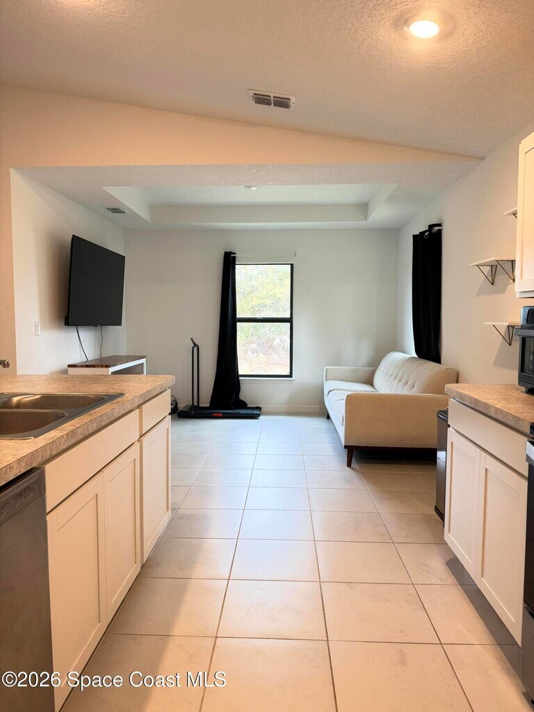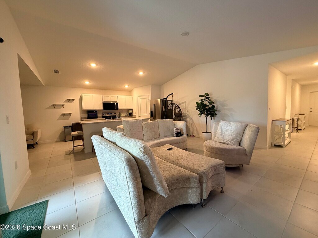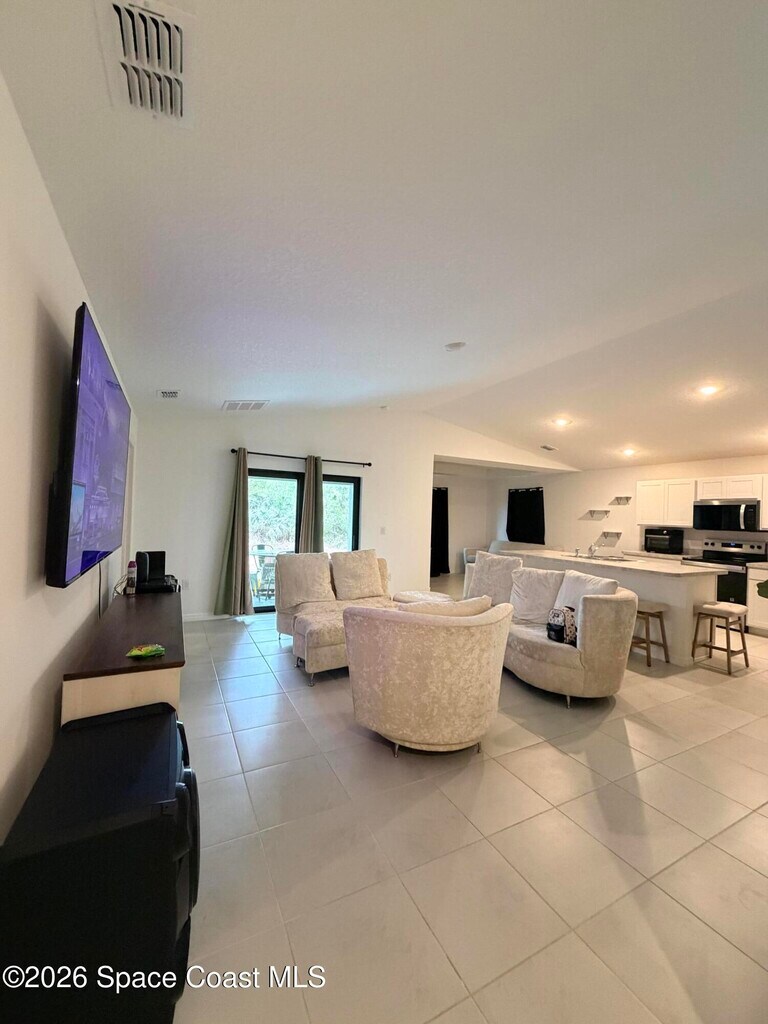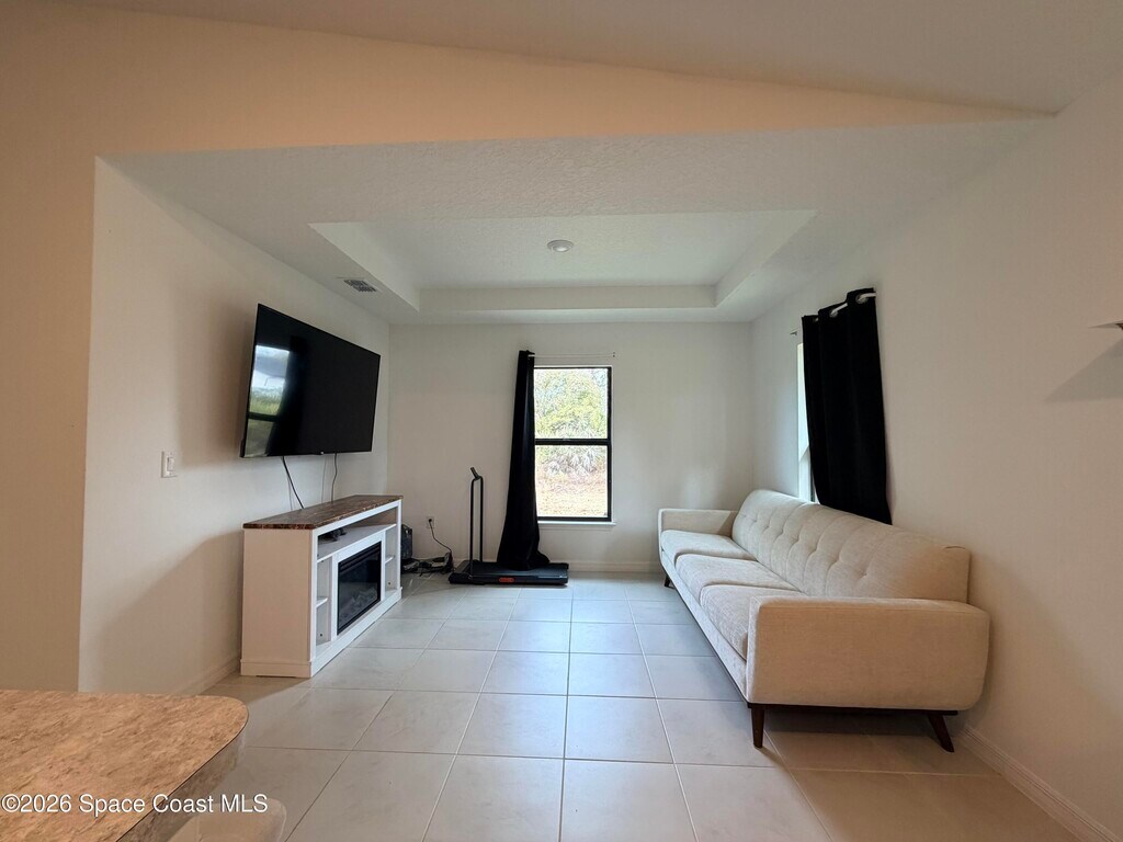 New 2025 build 4 bed 2 bath home in Palm Bay for rent.. Corner lot,spacious open floor plan,tile in common areas. Covered patio in back,quiet neighborhood. Washer,dryer and lawn care included in rent. MLS # 1068192
