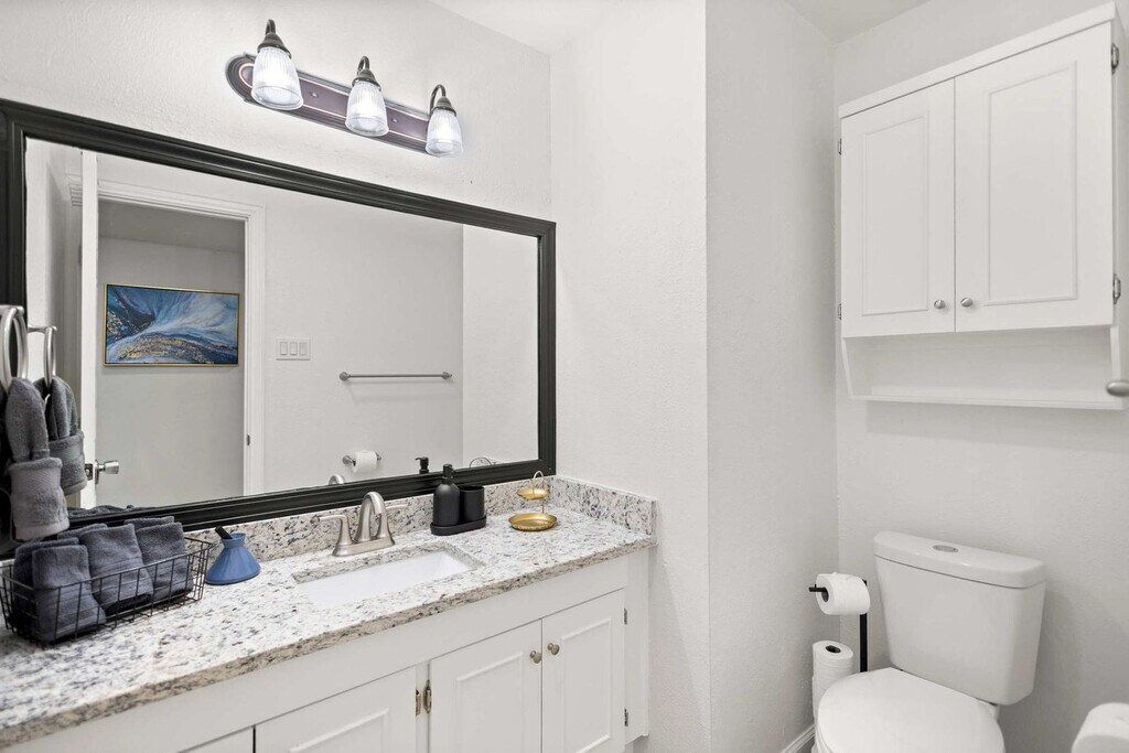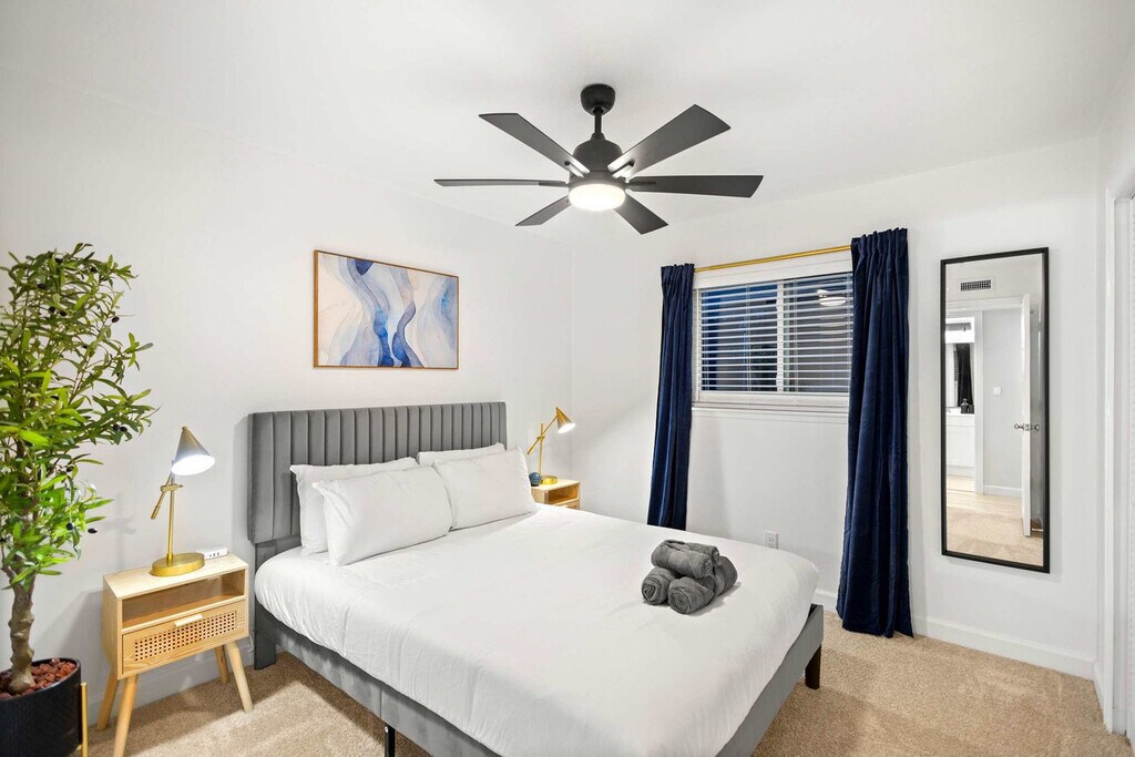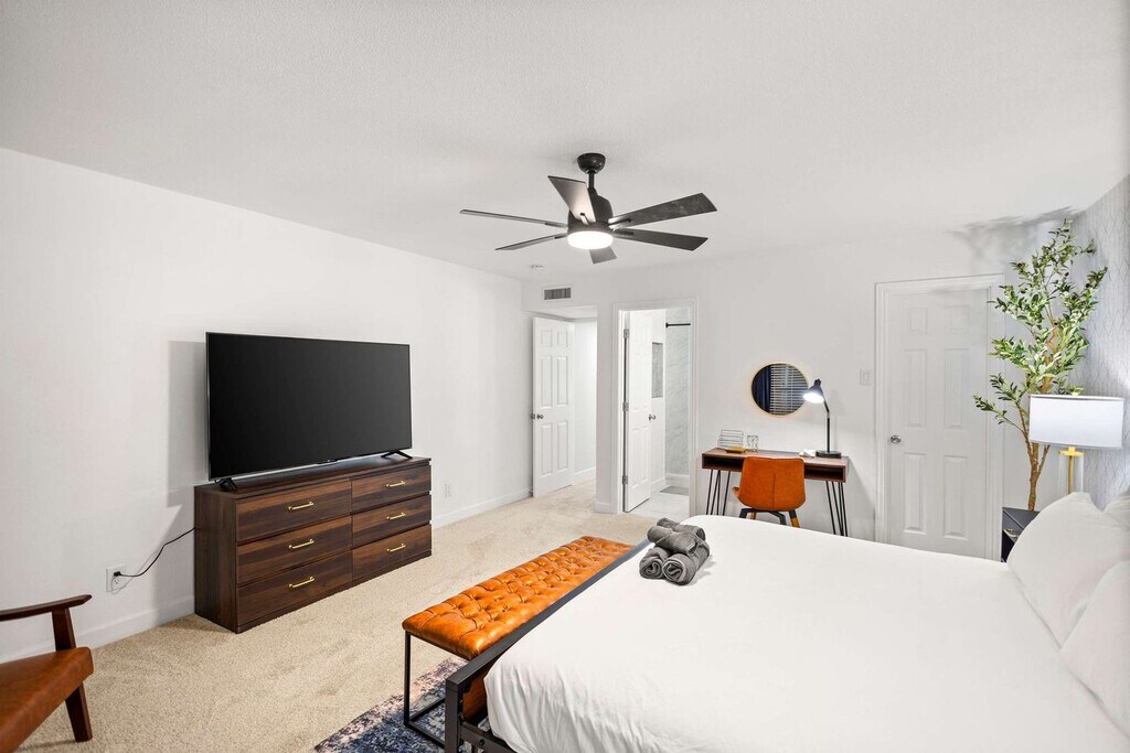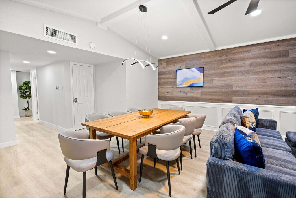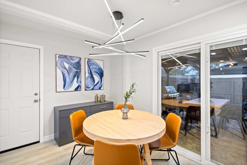 Feel at home in this gorgeous and stunning 5-bedroom home in Grand Prairie, furnished with your comforts in mind. This home sleeps up to 10 guests. This home is designed to be your home away from home and features a fully equipped kitchen with stainless steel appliances, including a fridge, freezer, stove, oven, dishwasher, and microwave, as well as cooking essentials. The open-concept layout makes it easy to socialize whether you’re lounging in the living room with its L-shaped sectional and arm chairs, designer rug, artwork, and coffee table, or snacking at the dinner table. There is a dedicated formal dining area with seating for 8 and a cozy breakfast nook with seating for 4, as well as place settings and dining utensils. The bathrooms are sparkling clean with a spa-like atmosphere and walk-in showers for easy access. Essential toiletries, such as towels, soap, and toilet paper, are provided. Pets are welcome with a non-refundable pet fee of $150 per pet, with a maximum of 2 pets per stay. Free parking is available with space for 2 cars in the garage and 2 cars in the driveway. With plenty of sunshine, one of the biggest draws to Grand Prairie is the many fun and exciting things to do here. From theme parks to professional sports, excellent restaurants, and much more, there's never a dull moment in this fine Texas town. Some popular nearby Grand Prairie points of interest include Epic Waters Indoor Waterpark, Traders Village, Lone Star Park, AT&T Stadium, and Ripley’s Believe It or Not. Parties or large unauthorized gatherings of any sort are not allowed. Smoking of any type is not allowed, and violations are subject to a $450 fine plus the cost to clean, deodorize, and repair damages. Only registered guests are allowed on the property. The check-in time is 4pm and the check-out time is 10am. No street parking is allowed due to City Parking Regulations. To be a good neighbor and host responsibly, comply with local noise ordinances and occupancy regulations, and prevent unauthorized parties, a noise alert device has been installed in our home. This device is not recording nor storing sound data and only functions to measure decibels and send alerts in case reasonable noise levels are exceeded. Registration Number: STR26-000017 [SI]