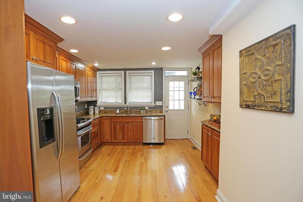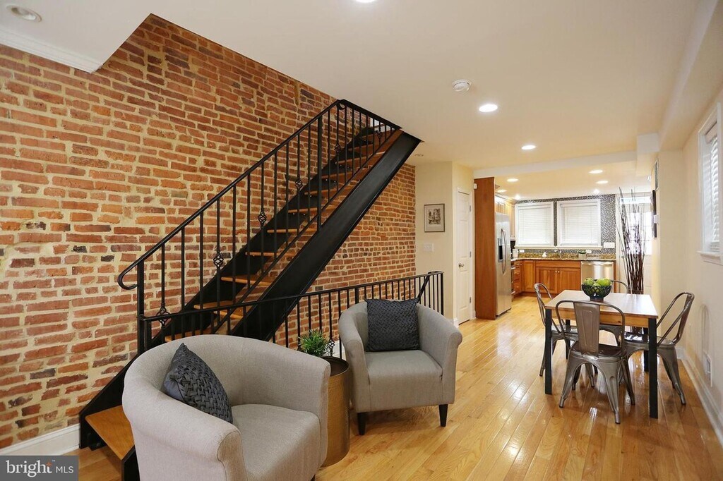 Gorgeous end of group home a stone's throw from the Natty Boh tower! Enjoy all that Canton has to offer in this well located home. Gleaming hardwood floors in open first floor- living room, seating area, dining space and gourmet kitchen with granite counters and tile backsplash. Exit to a great outdoor space - patio that is fully fenced is perfect for grilling out. Enjoy outdoor space on deck that is off master bedroom on second level Spacious second bedroom as well as a large appointed shared bath with separate shower and tub. Great finished lower level family room and another huge attractively updated second bath. Small utility room and a stackable washer dryer as well. Available Mid-May. Renters Insurance required. $2150.00 Monthly + Utilities. #L-511652