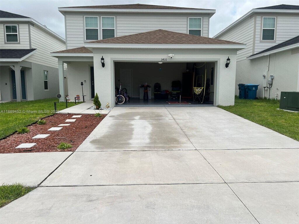 Brand-new 2024 2-story fenced home in Hartford Terrace, a recently built Davenport community off Hwy-27 and minutes from I-4 with quick access to Orlando, Lakeland, and major theme parks. Features 4 bed, 3 baths, 2,274 sq ft living (Lot 3,698 SqFt), central AC, 2-car garage with epoxy flooring, 1 bed/1 bath downstairs, loft and utility room upstairs, kitchen with island, pantry, stainless appliances, smart thermostat & doorbell. Master suite with walk-in closet. Rent includes 1G internet and Spectrum streaming TV with Amenities under construction, including a resort-style pool with cabana, sports field, playground, trails, and dog stations. Close to Publix, Walmart, AdventHealth, CVS, Walgreens, Lowe’s and more.