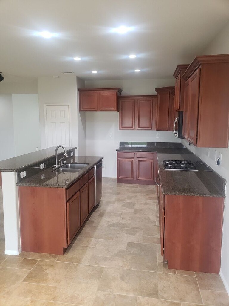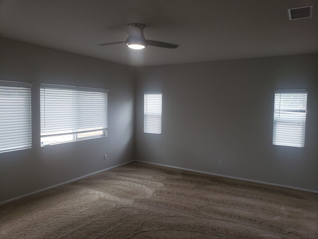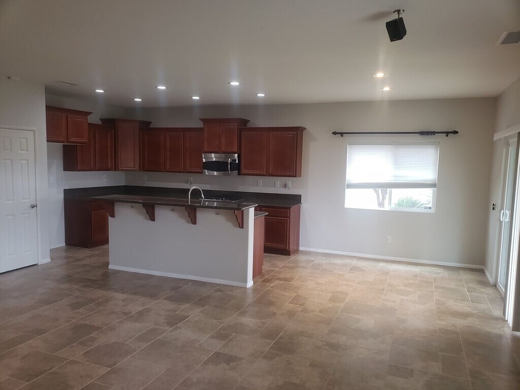 Great Layout Single Story-Beautiful, Turn Key Home, Pride of Ownership is evident. NO PETS !! Interior: Dark Maple Counters, Granite Kitchen with island/sink. Upgraded Tile and Carpet, Upgraded Lighting throughout, wired for surround sound & TV's (even the Master Bath with Bluetooth). Tile floors except for bedrooms. Huge Dining Room & Family Room. Great open kitchen w/ breakfast nook. Master Bedroom with walk-closet and private bath. Two bedrooms @ front separated from main part of the house with Jack-N-Jill bathroom. Fourth bedroom near the master bedroom. Two Full Baths and One Half Bath. Three Car Tandum Garage with special floor coating. Exterior: Beautifully landscaped both front and rear. Mountain View, on a Cul-de-sac. Covered Patio with ceiling fan. Includes full yard service & trash paid. No Rear Neighbor and very private.