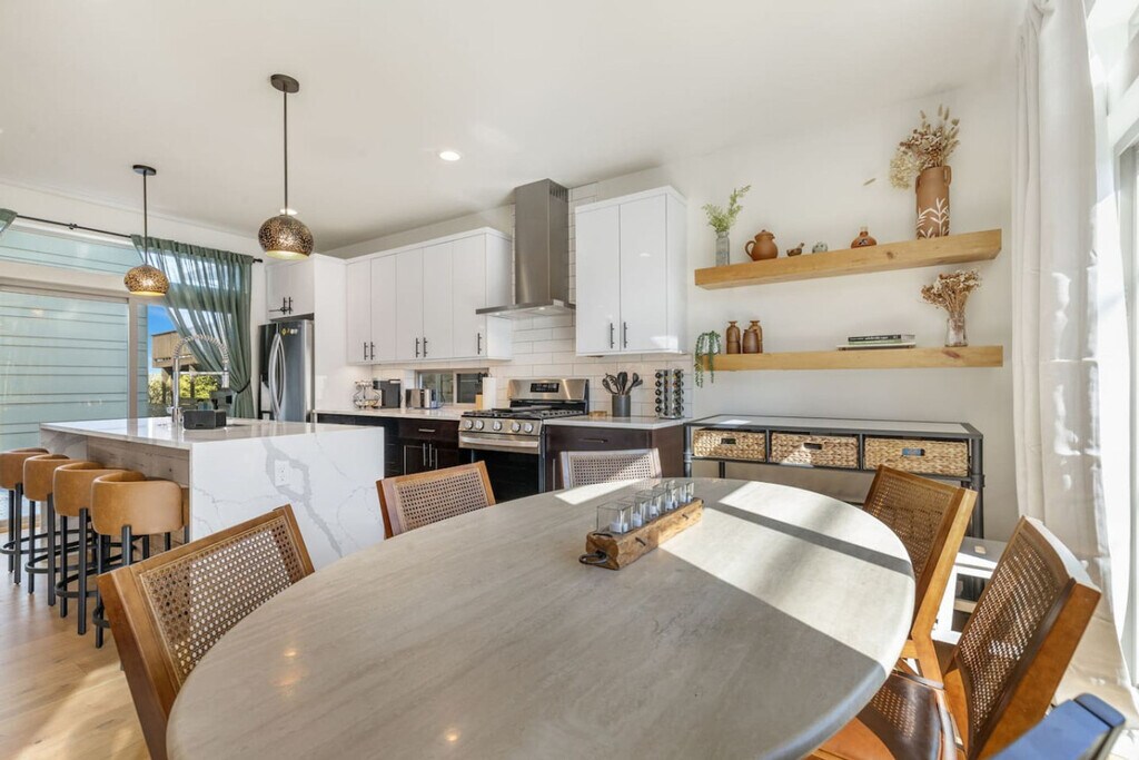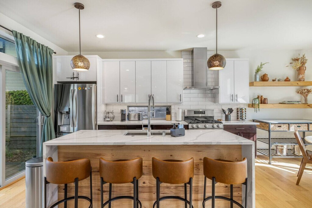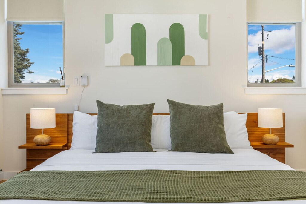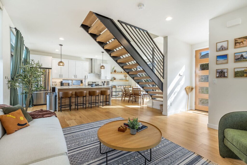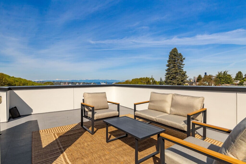 Unwind in this contemporary 3-bedroom, 3.5-bathroom getaway in the central North Beacon Hill neighborhood. Take in the panoramic city views from the balcony and rooftop terrace, relax in the spacious living room, or make the best of the fantastic location and explore everything Seattle offers. This elegant four-floor Seattle townhouse boasts a modern design and amenities that will spoil you during your stay. The inviting retreat has been decorated to create a feeling of a relaxing second home, with ample natural light warming the space during the day through the large windows and balcony/backyard doors. The open living area on the first floor combines a fully equipped kitchen, a charming dining area, and a relaxing living room full of exciting amenities to entertain you for hours. The main draw of this beautiful home is the spectacular rooftop terrace where you can take in the majestic panoramic views of the entire city. Business guests will surely love the newly furnished office space on the third floor complete with a sit-to-stand desk option! Free parking is available, and for those with electric vehicles, an EV charger is provided. However, no pets are allowed, and bringing a pet will incur a $500 fine. There are no parties or events allowed, and violations will result in a deep cleaning fee between $500 and $700, plus a charge for carpet cleaning depending on the size of the home. Outdoor quiet hours are from 10pm to 7am, and failure to adhere to this rule can result in an additional fine of $100 per incident. A cleaning fee is based on courteous guest behavior, and any unreasonable mess or damage will incur an additional cleaning fee of $50 per hour. Smoking of any kind is prohibited, and a $500 deep cleaning fee will apply if any smoke debris or smell is identified. The townhouse is a part of the charming North Beacon Hill neighborhood, nestled just south of downtown Seattle, offering a unique blend of cultural diversity, rich history, and modern urban appeal. North Beacon Hill is a cultural mosaic, reflecting the diverse backgrounds of its residents. This diversity is evident in restaurants, cafes, and shops lining the streets. Indulge in a global culinary journey with eateries offering everything from traditional Vietnamese pho and Filipino delicacies to Mexican tacos and classic American diner fare. One of the neighborhood's highlights is Jefferson Park, one of Seattle's largest and most beloved green spaces. The park features sprawling lawns, sports fields, a golf course, and a community center. It's an excellent spot for picnics, leisurely walks, and outdoor activities. The park's elevated location offers stunning panoramic views of downtown Seattle, the Olympic Mountains, and Mount Rainier, providing a picturesque backdrop for photos and relaxation. North Beacon Hill's location makes it an ideal base for exploring Seattle. The Beacon Hill light rail station provides quick and easy access to downtown Seattle and other key areas, making it convenient for tourists. The neighborhood's proximity to the city center means you're never far from Seattle's major attractions, yet you can retreat to the quieter, more relaxed atmosphere of North Beacon Hill at the end of the day. This home is on an arterial road in Beacon Hill, and you may experience some traffic noise during busy commuting times. The home is mostly quiet during off-peak commuting hours. Early check-ins are not guaranteed and are subject to a fee of $25 per hour for every hour in advance of the check-in time. Late check-outs must be approved and are $50 per hour for each hour beyond the regular 11am check-out. If guests stay past the 11am check-out time without approval, they will be charged for the next night’s stay. You are not permitted to send or receive mail from this address during your stay. We reserve the right to refuse accommodation or demands from rude, disrespectful, and/or discourteous guests and may terminate your stay at our discretion if such behavior continues. The third floor features a convenient office space ideal for meetings or work sessions, complete with a workspace that includes a desk and chair. A smart TV is also available for use. A laptop computer is not included. Registration Number: STR-OPLI-25-001756 [SI]