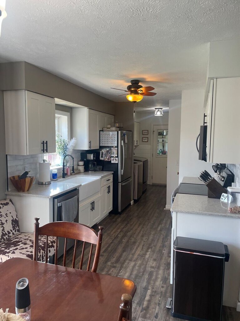 This two bedroom two bath home with large garage and fenced in back yard. All new LVp flooring throughout, updated primary bathroom, open floor plan with kitchen, dining room, and living room. Large pantry and laundry. Great rear deck and covered front porch. Owner will take care of the lawn. Tenant responsible for electric and internet. Pets considered with pet screening, $200 pet deposit, and $25 per month pet rent. Must apply at Call to schedule an appointment to see the property .