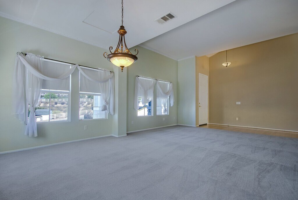 Nestled on a tranquil cul de sac street within the desirable Star Point Ranch, this captivating residence, erected in 2001, boasts an expansive layout sprawling over 2,848 square feet and sits proudly on 8.2 acres of land. Architecturally appealing with its high vaulted ceilings and expansive windows, this turn-key abode masterfully orchestrates seamless transitions between its generously proportioned living spaces. Among its standout features are a luxurious pool graced by 360-degree views of rolling mountains, a spa, comprehensive RV parking equipped with hookups, and an extensive half-acre horse corral complemented by a half barn, hay shed, tack room, and a covered stall. This exceptional property houses 4 bedrooms and 3 bathrooms, each designed to enhance productivity and spark creativity. Bathed in sunlight, the home radiates warmth and welcome, with each room framed in picturesque views. The kitchen, a culinary haven, is outfitted with granite countertops, a central island, ample cabinetry, and a spacious pantry. The master suite is a realm of relaxation featuring a walk-in closet and a luxurious ensuite equipped with double sinks, a spa bathtub, and a standalone shower. This residence is in perfect unity with its natural landscape, offering panoramic mountain vistas, a serene swimming pool and spa, and a suite of outdoor amenities, making it an idyllic retreat.