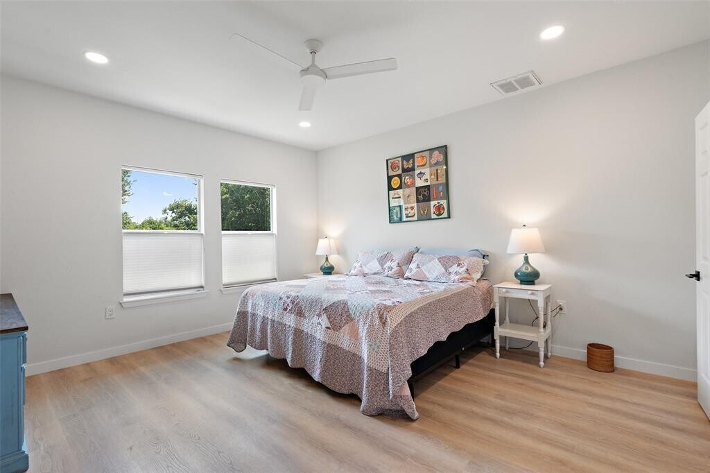 Charming Remodeled Duplex in South Austin Beautifully updated and ideally located, this South Austin duplex offers the perfect blend of modern comfort and convenience. Fully remodeled in 2021, the home features high ceilings, an open-concept layout, and abundant natural light throughout. The kitchen includes quartz countertops, ample cabinetry, and a full appliance suite, opening to the dining area with built-in storage and a lovely banquet. The living room is light filled and spacious with easy access to the private backyard—perfect for outdoor dining or entertaining. Upstairs, the spacious primary bedroom includes generous closet space and an updated en suite bath with a spa-like walk-in shower. Two additional bedrooms and a large secondary bathroom provide flexibility for guests, a home office, or extra living space. Additional highlights include updated finishes, modern fixtures, and a prime location close to shopping, dining, and entertainment. Move-in ready and full of charm—this South Austin home is a must-see!