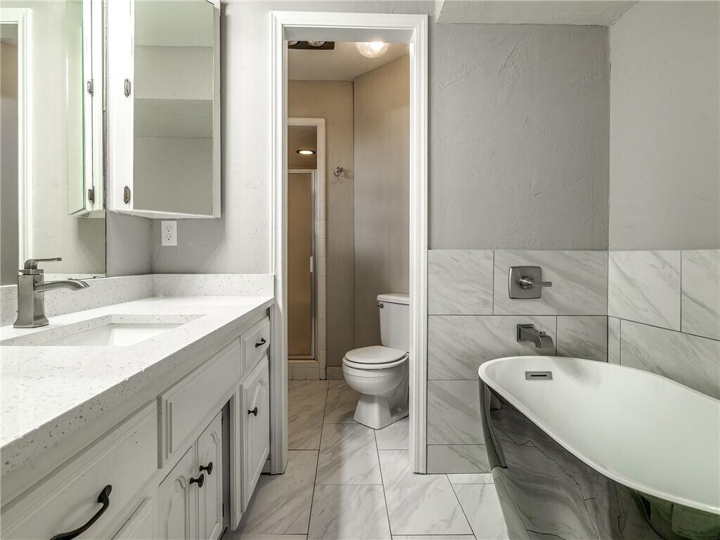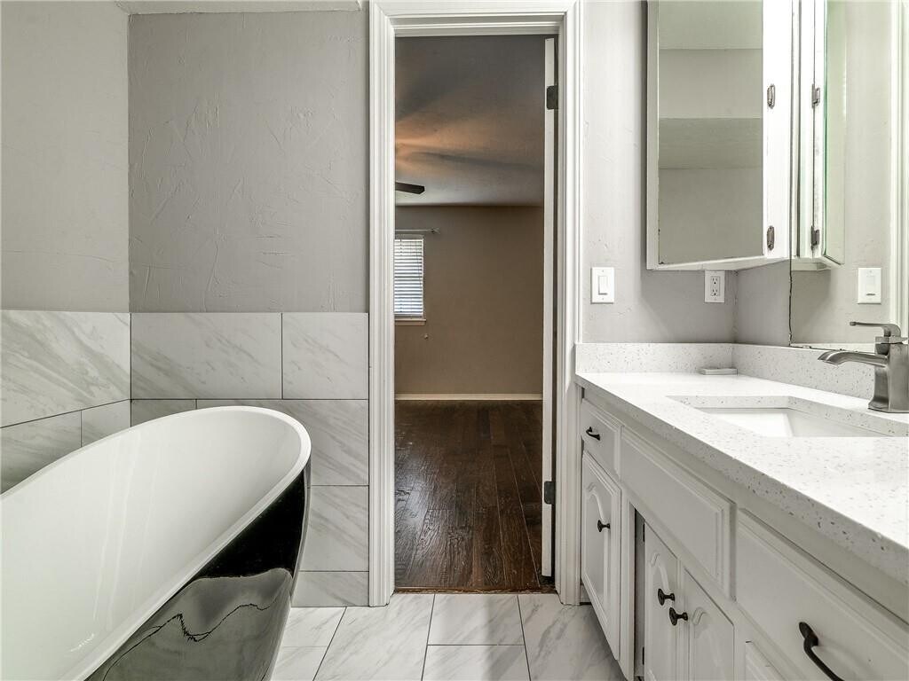 Prime location and impressive updates in this East Edmond gem! Sparkling quartz countertops throughout and plenty of storage and entertainment space in this versatile plan. Primary suite features wood floors,a modern black soaker tub and marble tile finishes. Available for move-in December 5th. Tenant responsible for all utilities,mowing and landscaping. Owner/Agent