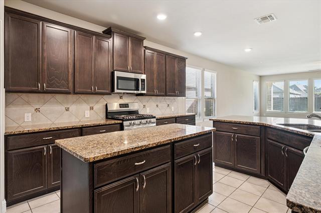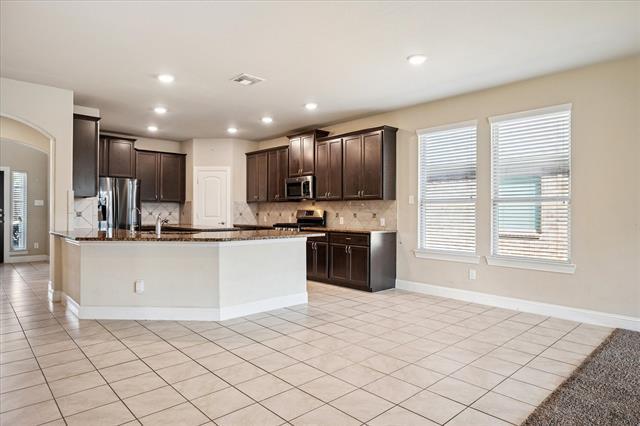 AVAL NOW - WASHER, DRYER & REFRIGERATOR IN KITCHEN STAYS. Spacious two-story home in Frisco with Little Elm ISD. Gorgeous entry foyer that leads to an open common living area. Lots of windows and ceiling fans for a bright and airy feel Kitchen includes granite countertops, center island, gas cooktop,and all appliances. Master suite on ground level. The primary suite is on the first floor with a separate tub, walk-in shower, and large walk-in closet. Study on first floor can be used as formal dining or living room. Upstairs are three bedrooms, two baths and a game loft. Large fenced backyard with covered back patio!! The Rivendale by the Lake community offers an array of amenities, including a pool, water slides, splash pads, a playground, and walking trails. With its proximity to the DNT and Hwy 121. Prime location near Main & 423 with shopping, dining, and amenities close by.