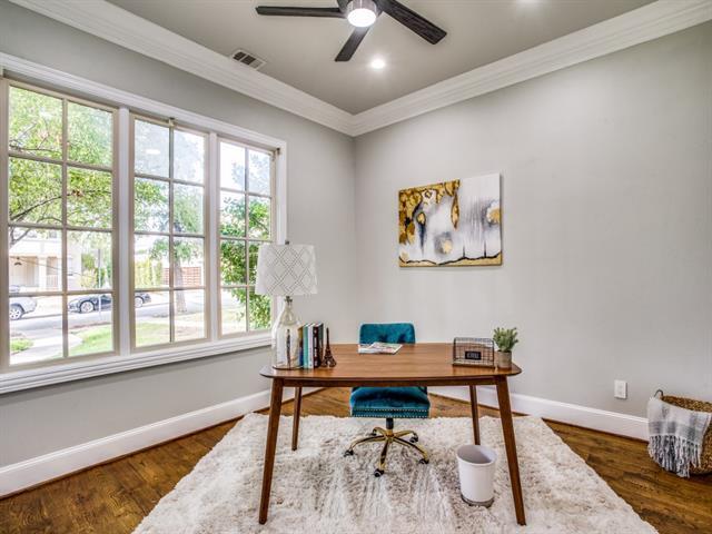 Welcome home to this stunning 3 story, single attached home, ready for immediate move-in. Absolutely beautiful 5-bedroom, 5 bath home. Designed with comfort and style, as you enter, a private office is off the foyer, hardwood floors throughout the first floor, high ceilings and a gas fireplace. The fabulous kitchen has Quartz counters, gold fixtures, an island and a gas cooktop. This home is conveniently located, within walking distance to middle school, all of the charm of Snider Plaza’s shops and restaurants, SMU, University Park Pool and lots of Parks. 4th bedroom on the top floor could be a game groom. Washer, dryer and refrigerator come with the home.