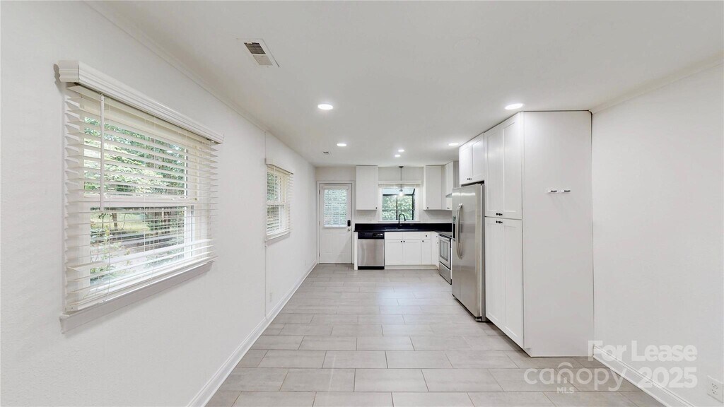 Renovated 5-bedroom,2.5-bath split-level home in Windsor Park! This single-family home features an updated kitchen with granite countertops,stainless steel appliances,and modern cabinetry,complemented by fresh paint,hardwood floors upstairs,and luxury vinyl flooring downstairs. Spacious living room,custom bathrooms,a walk-in laundry room with washer and dryer,and a expansive yard with mature trees,all situated on a quiet cul-de-sac. Plenty of parking available on the long driveway. Located just minutes from Plaza Midwood with quick access to I-74 and Uptown.