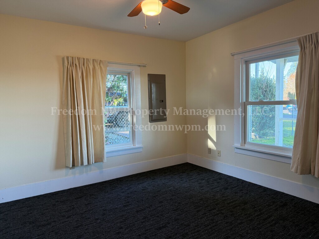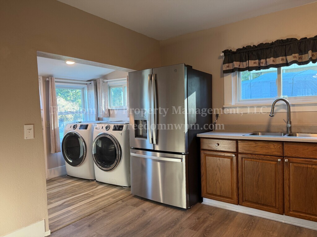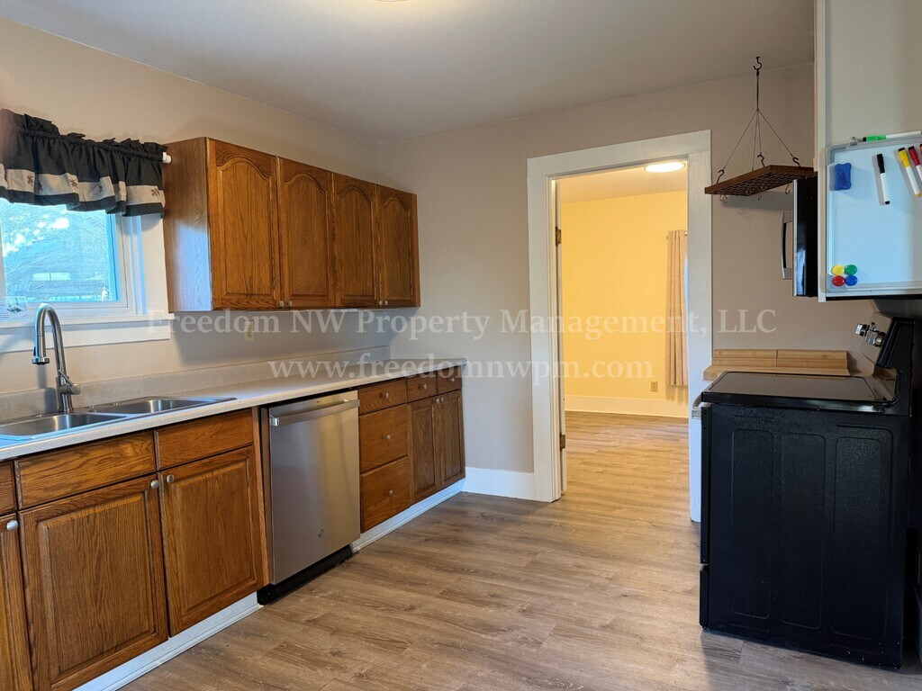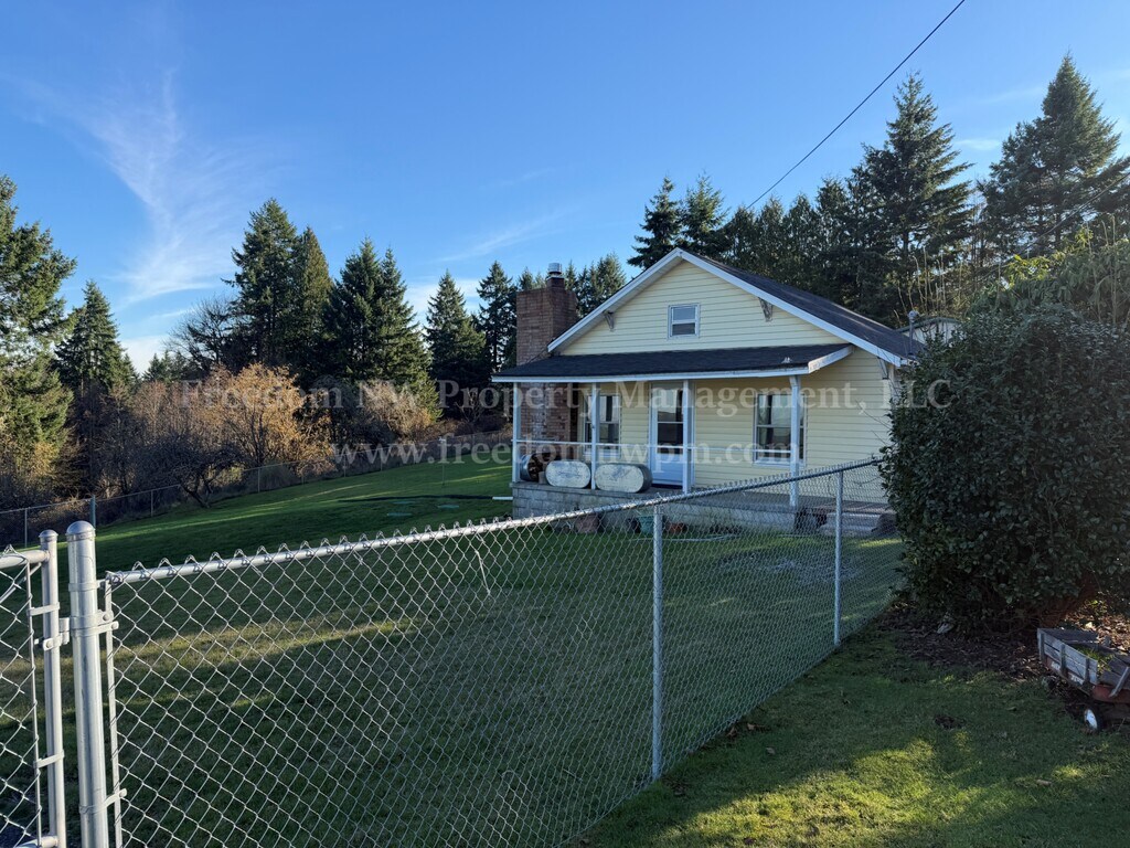 This updated 2 bedroom, 1 bathroom home offers comfortable living with thoughtful features throughout. The home includes a cozy woodstove, ceiling fans, and stainless steel appliances including refrigerator, range, dishwasher, and microwave. Washer and dryer are included for added convenience. Situated on a fully fenced one-acre lot, the property provides plenty of outdoor space and privacy, complete with a firepit for outdoor enjoyment. A detached one-car garage is included, and landscaping service is provided. Pets are welcome. No smoking. Home is down a private drive. We do not want to disturb the neighbors, so please do not drive-by without an appointment.